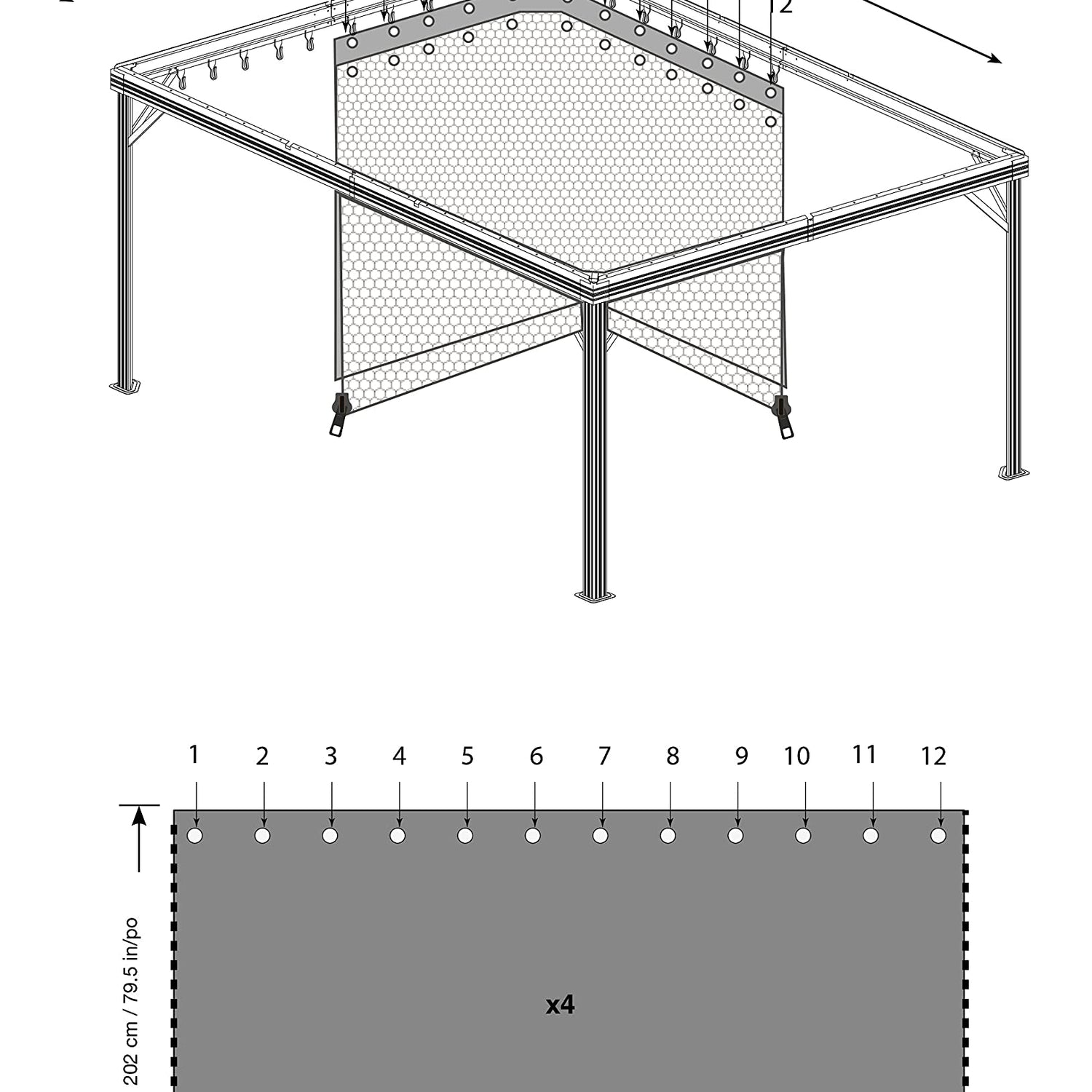 Details: Genova privacy curtains are a perfect complement to your sun shelter of the same name. Made of polyester, they will be more than useful to either block the wind, bring an extra touch of shade if needed or simply give you privacy.
