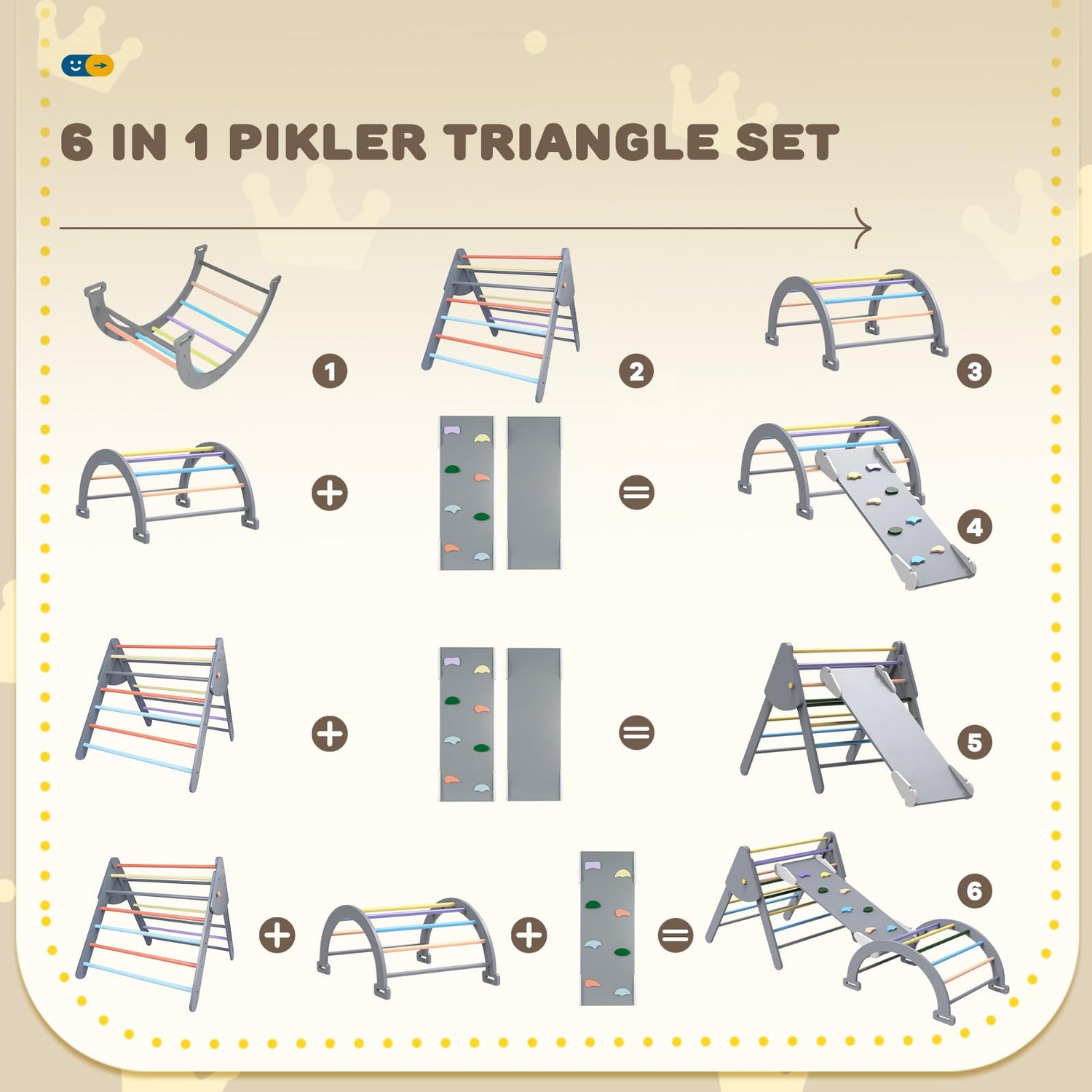 SOKO Pikler Triangle Set - 6 in 1 Pikler Triangle Climber with Ramp Set Foldable Pikler Triangle Climbing Toy, Rock Climbing Ramp, Pikler Arch Climber, Montessori Climbing Set for Children and Kids
