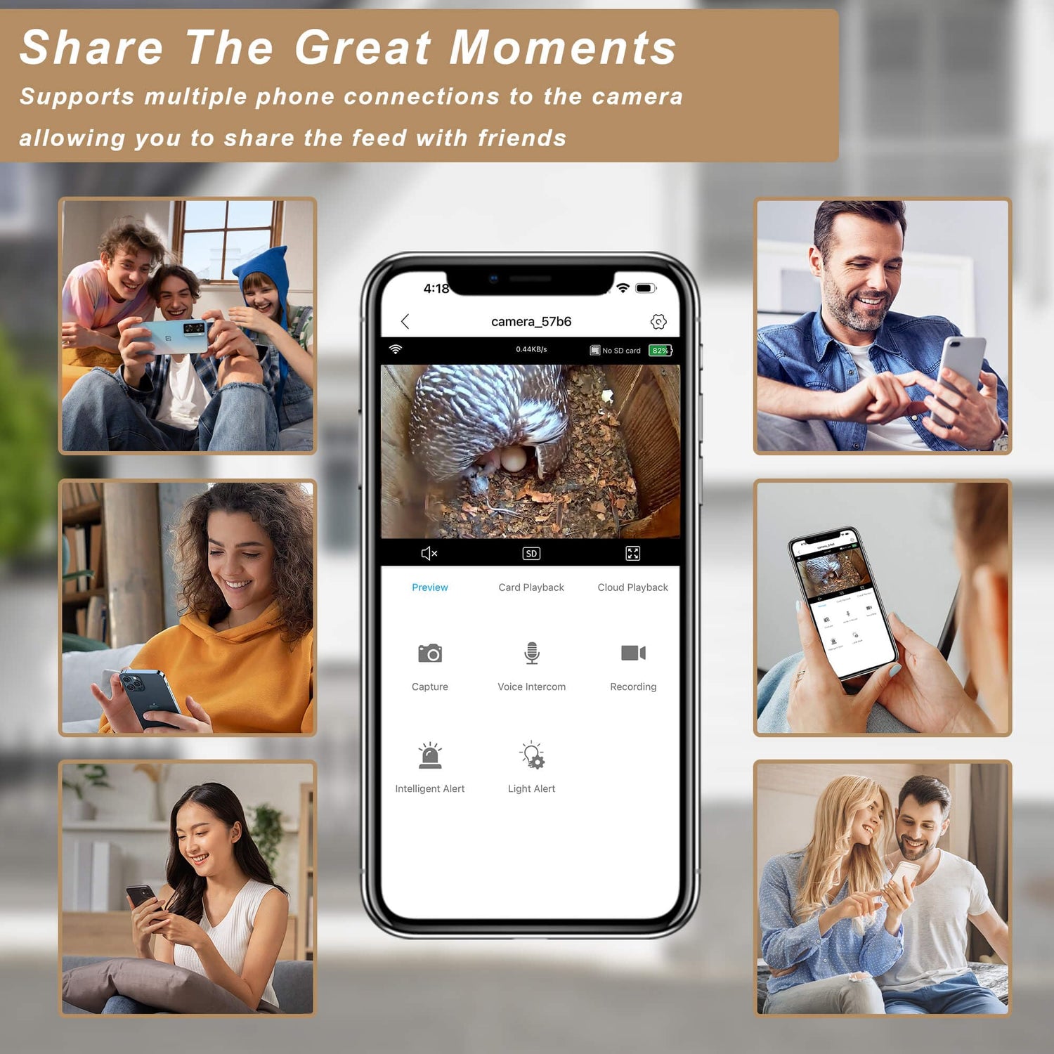 - Motion Detection in Smart Owl House: The camera features motion detection, sending real-time notifications to your phone when owls return to the nest. You can watch precious moments of owls nesting and hatching through the mobile app anytime.
