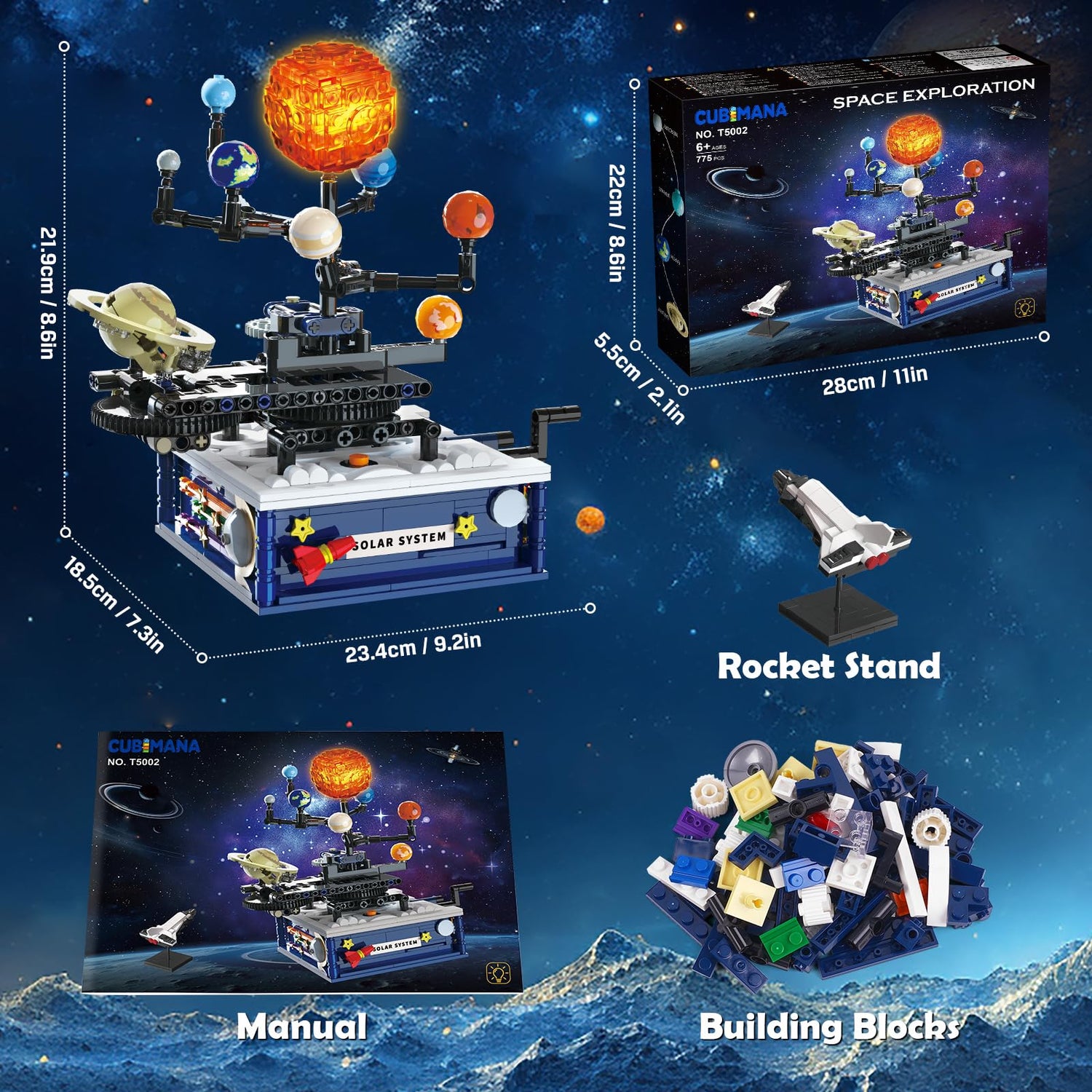 - 【Amazing Light Effect】 With special built-in light, this solar system building set can glow to imitate the amazing effect of sunlight, which adds to the mystery of the universe model set. Children can build their own solar system, which inspires their curiosity about science and space exploration