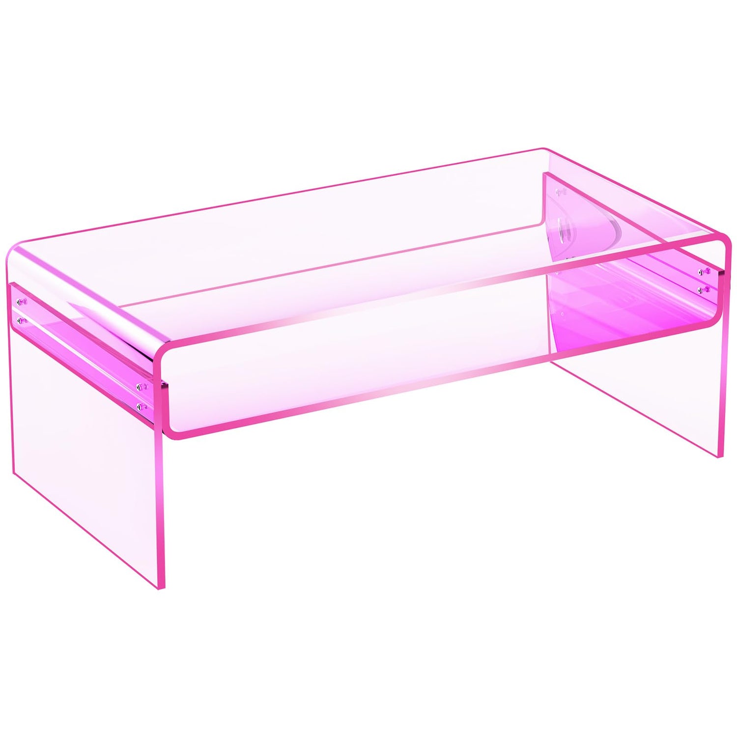 solaround Acrylic Coffee Table for Living Room Clear Rectangle Lucite Table with Open Storage Shelf (1, Pink, Large)