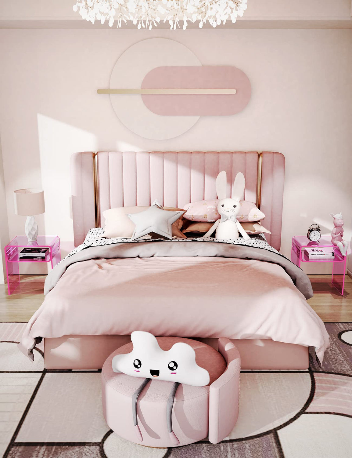 solaround Clear Acrylic End Table 2-Tier Bedside nightstand for Living Room Bedroom Home Decor (Pink)