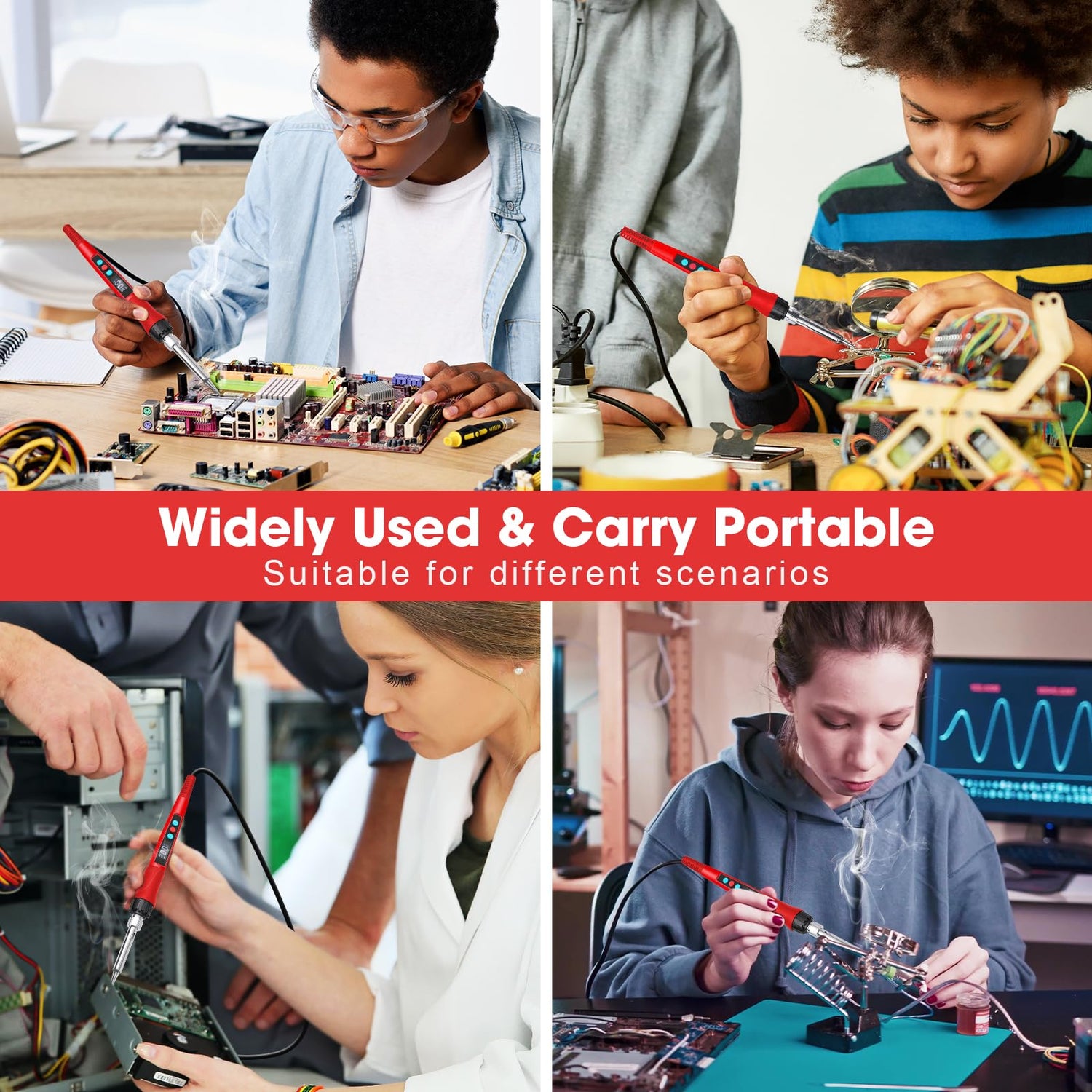- 【WIDELY APPLICATION】This soldering iron kit is widely used for PCB welding, equipment maintenance, circuit boards welding, craft welding, DIY, computer, home appliances, and phone repair. It's great for beginners, welders, and anyone who needs a reliable tool. Excellent Gifts for Fathers Day!