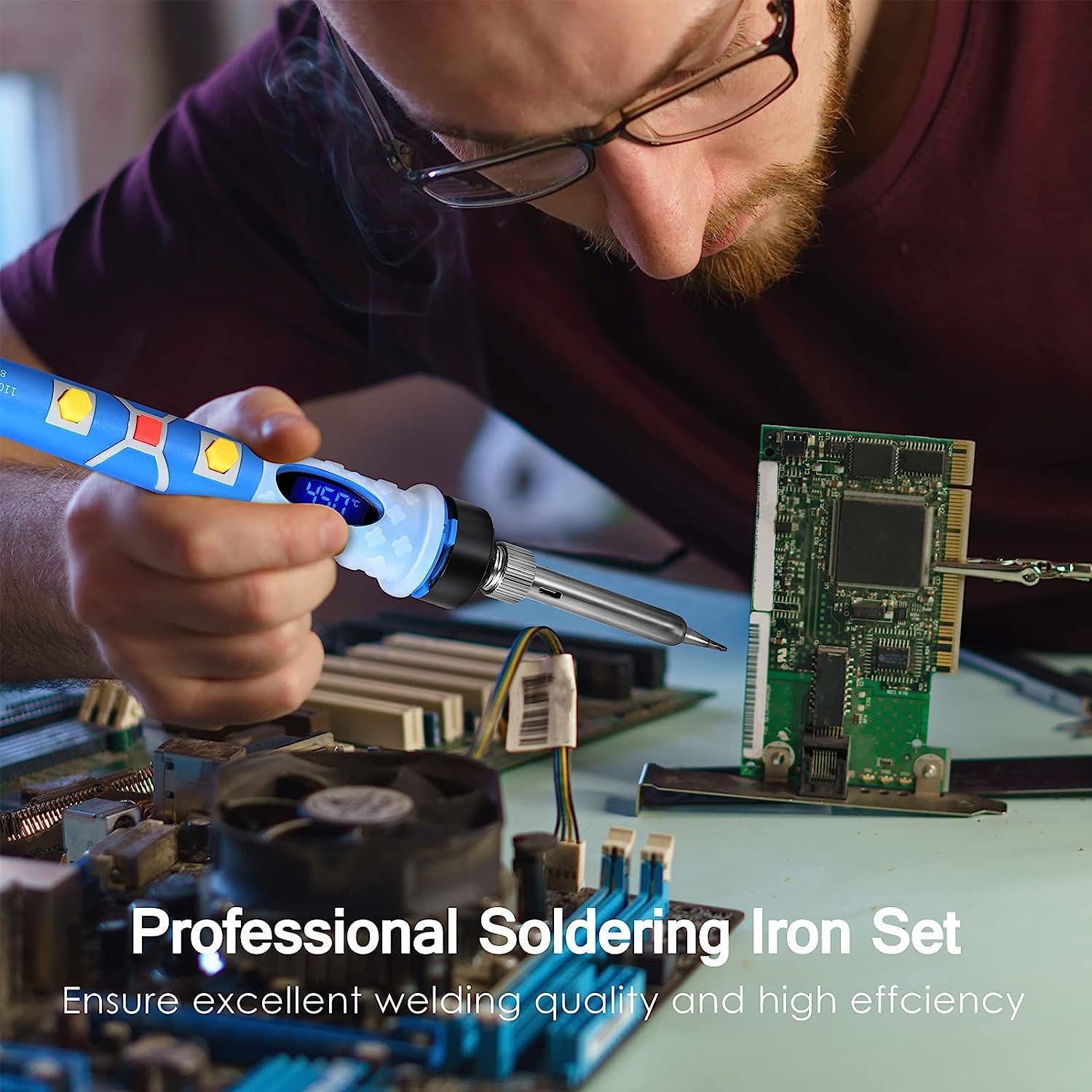 Soldering Iron Kit,80W LCD Screen Soldering Iron, Portable Digital Electronics Soldering Gun with Adjustable Temperature, Welding Tools with Fast Heating Ceramic Thermostatic Design