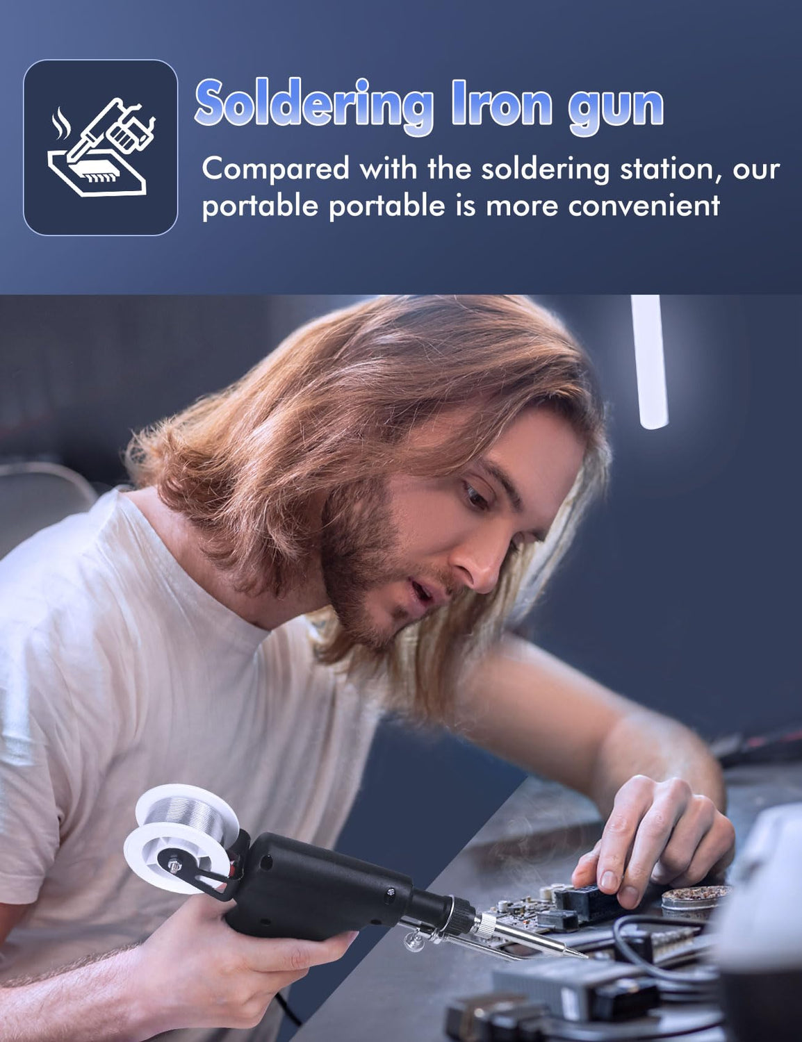 - 【Portable & Convenient】: Unlike bulky soldering stations, the gun's compact size and lightweight design It fits comfortably in my hand and is easy to carry around, which is convenient when I'm working on projects in different locations. Just plug and play