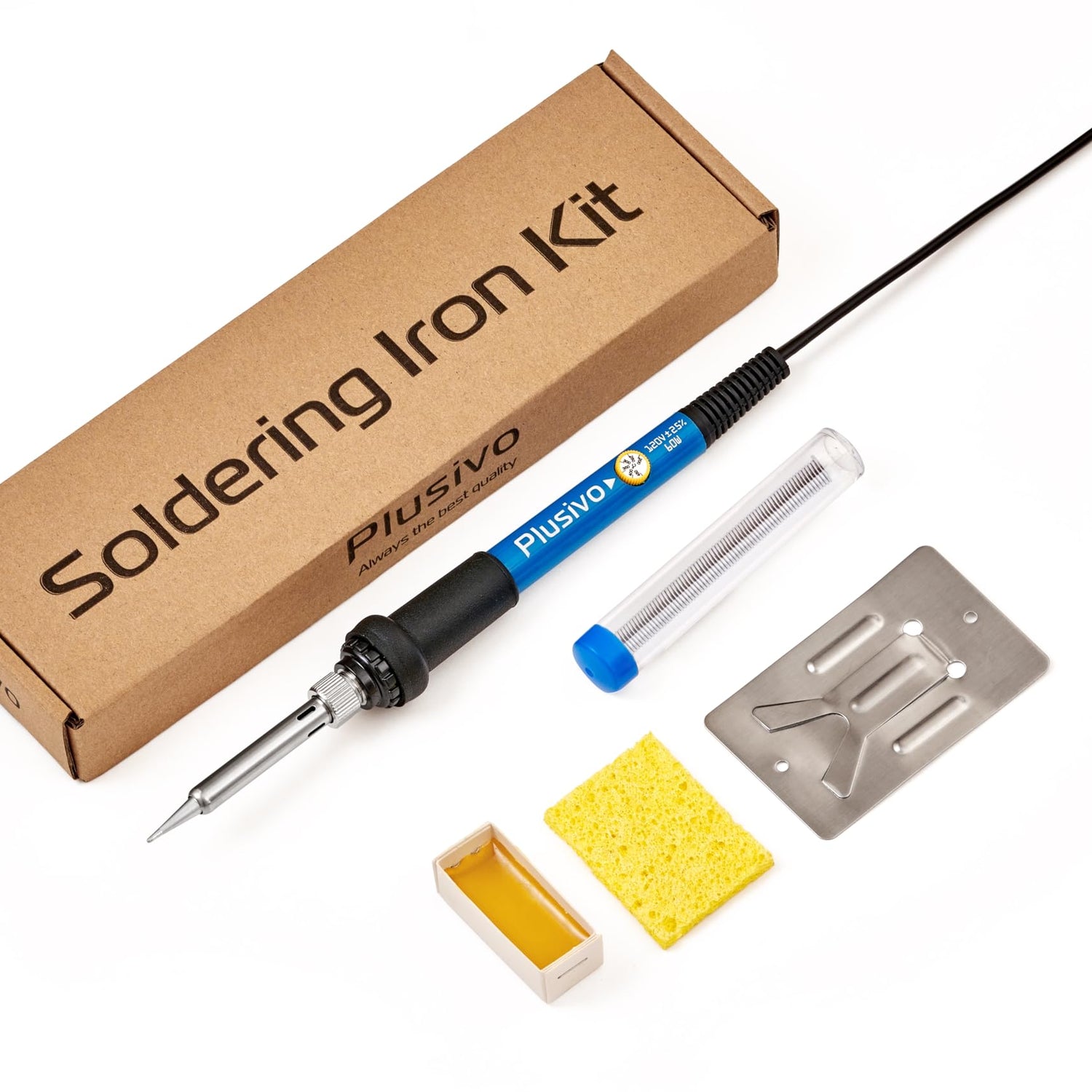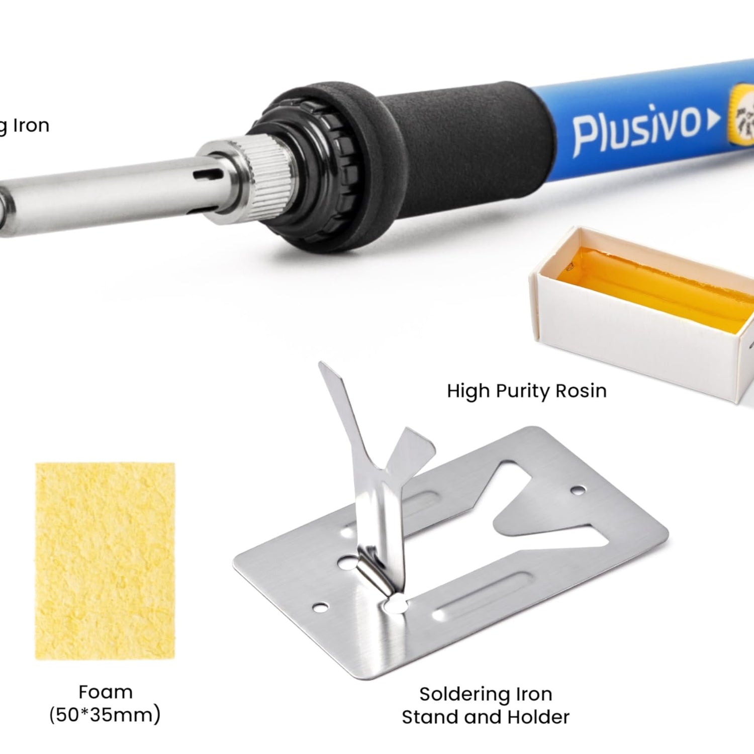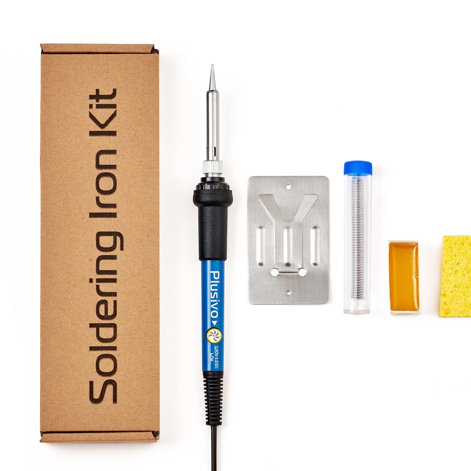 Soldering Iron Kit Electronics, Adjustable Temperature Soldering Iron 60W, Solder Wire, Solder Paste, Mini Stand from Plusivo
