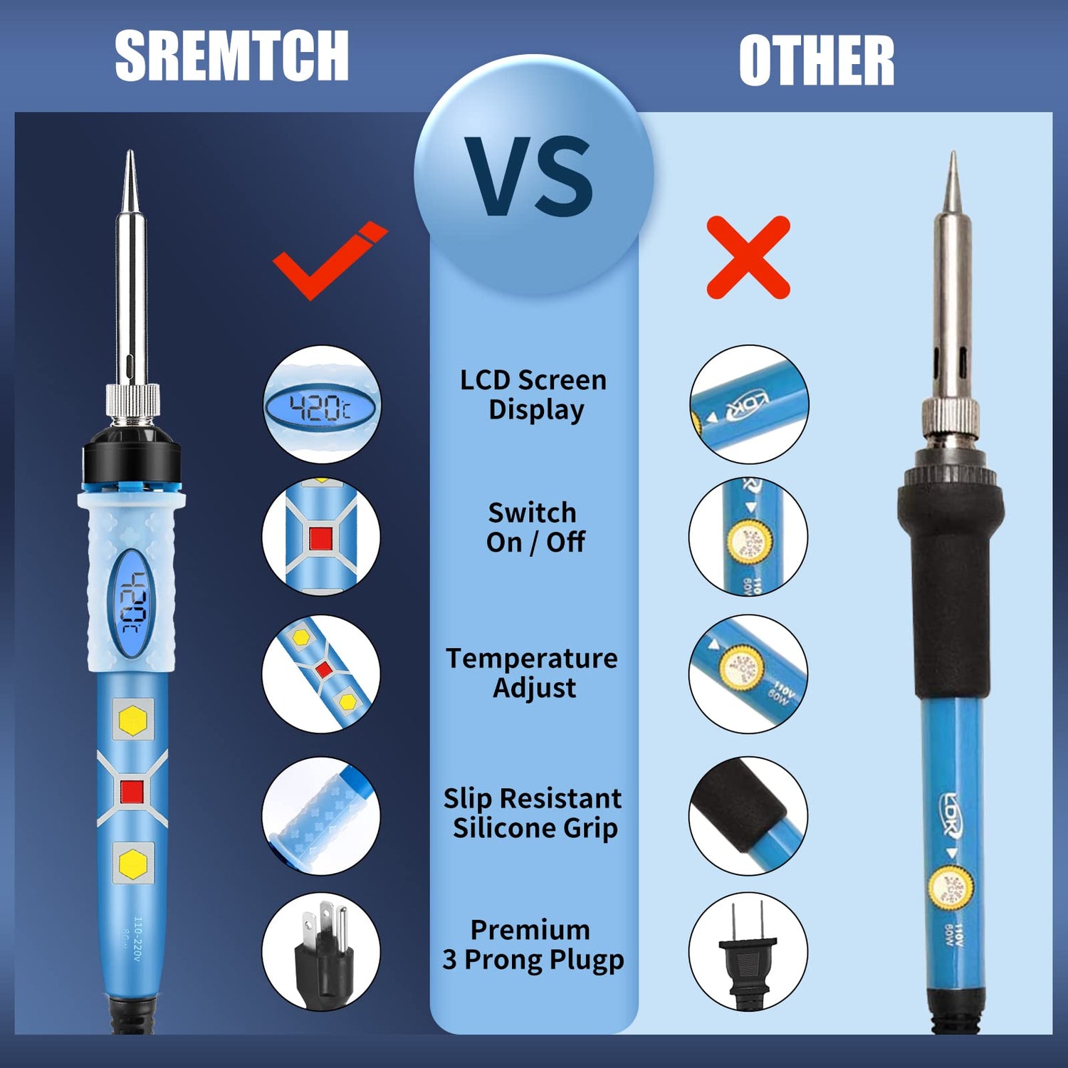 Soldering Iron Kit Electronics, SREMTCH 80W Digital LCD Adjustable Temperature Welding Tool with ON-Off Switch,10 in 1 solder gun