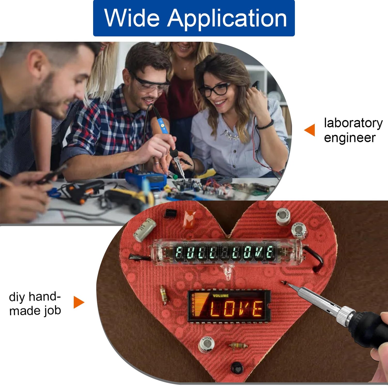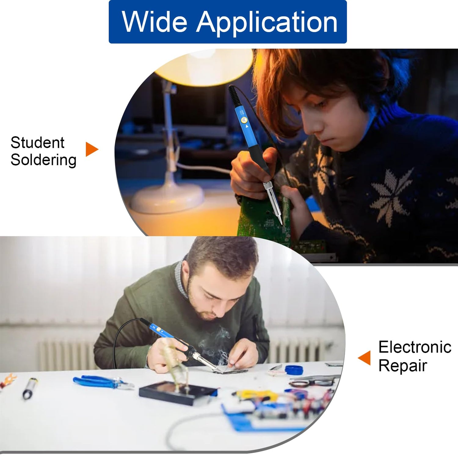 - Easy To Use Plug And Plug Design: The soldering iron adopts a plug-and-play design, which eliminates the need for cumbersome debugging steps; simply plug the iron into the power source and quickly start soldering work. This makes soldering more convenient and efficient.