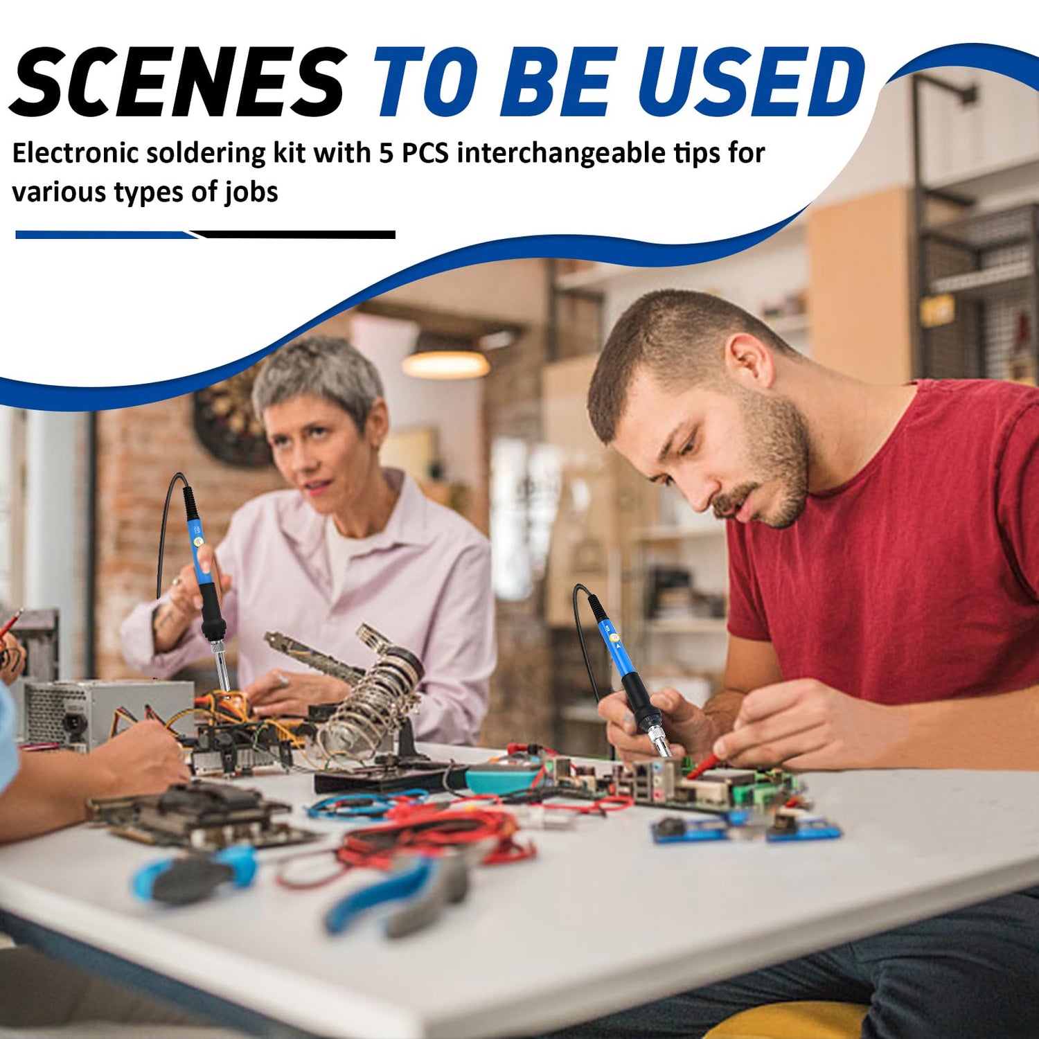 Soldering Iron Kit Soldering Kit With Temperature Adjustable Electric Soldering Gun,60w 110v Soldering Iron With Ceramic Heater,5pcs Different Soldering Tips Soldering Iron Stand (Blue)