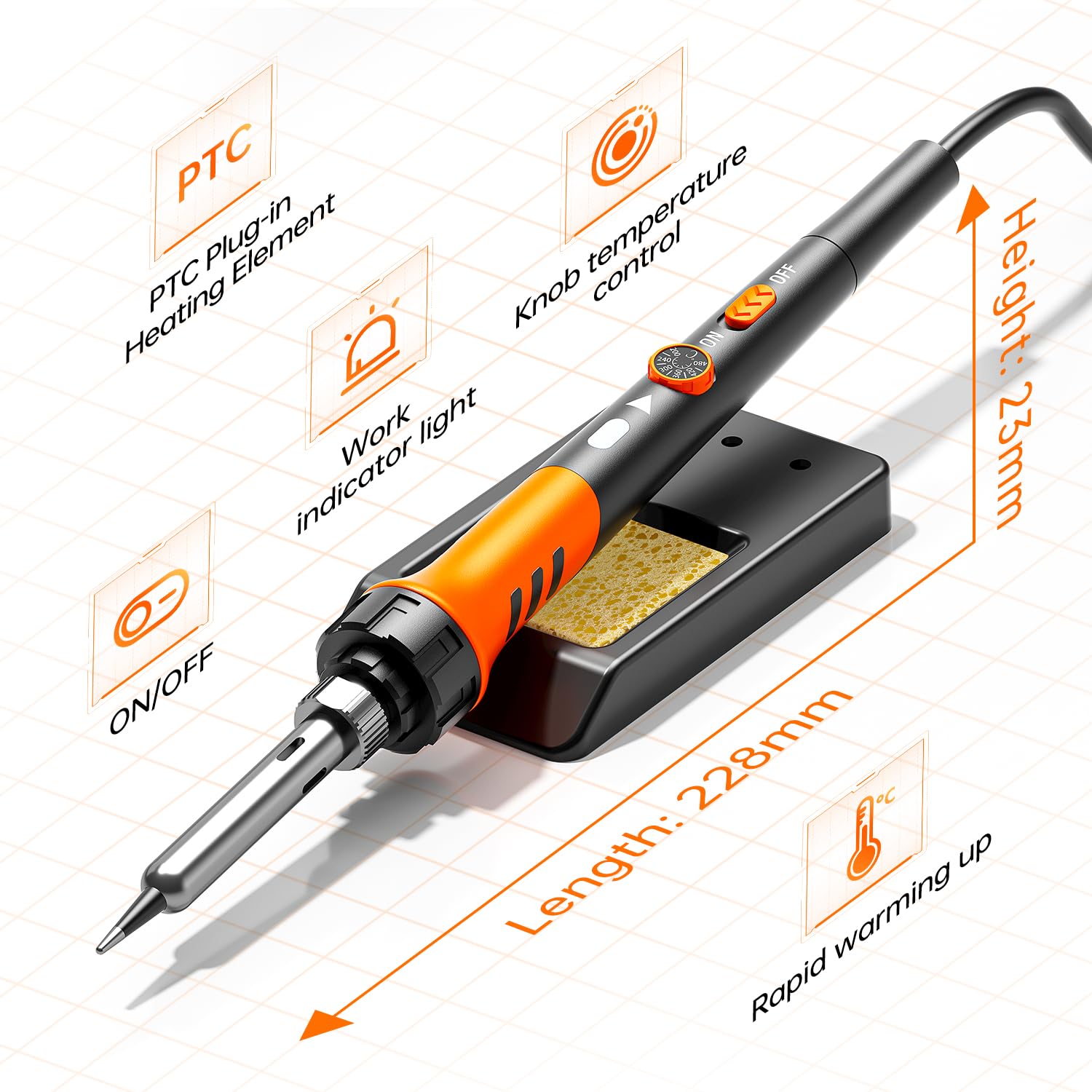 - 【High Efficiency and Safety】The soldering iron has an on/off key for energy saving and safe soldering, it is a 110V 60W adjustable temperature electric soldering iron, which heats up faster. Six air vents extend the life of the soldering iron and effectively prevent the soldering iron from overheating.