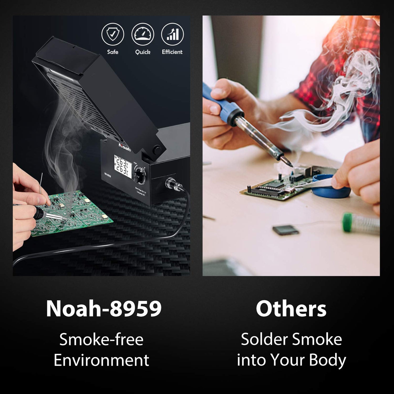 - ➤【Fume extractor】: The foldable and angle-adjustable smoker absorber removes solder smoke efficiently to create a safer working condition. Low noise and high- efficient fan operate at acceptable db levels in solder workstations. 1 extra activated carbon filter is for quick and easy replacement.