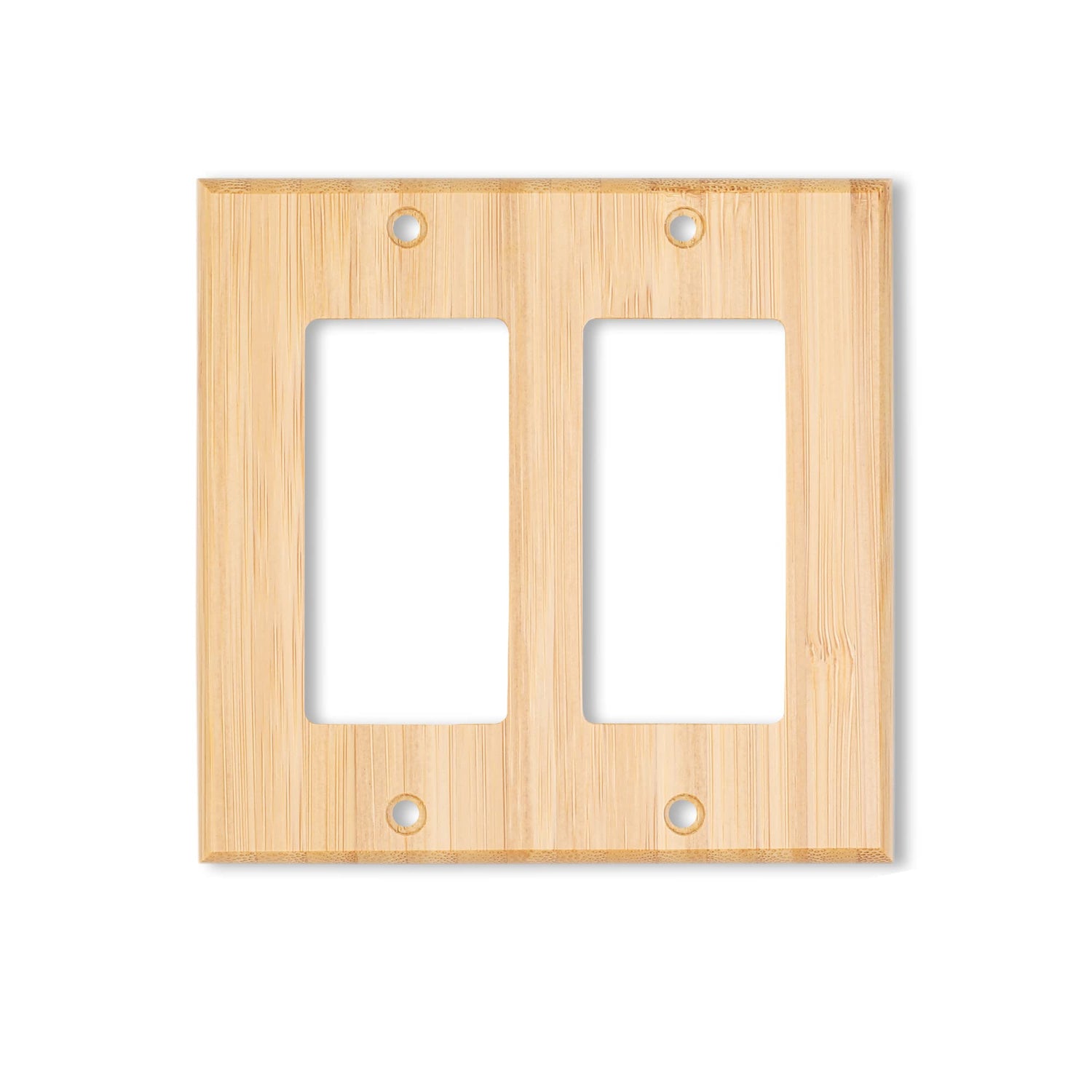 Solid Wood Double Rocker Light Switch Plate 4.5" X 4.5" Bamboo Light Switch Cover Quality Raw Wooden Decorative Bedroom Kitchen Home Decor (Double