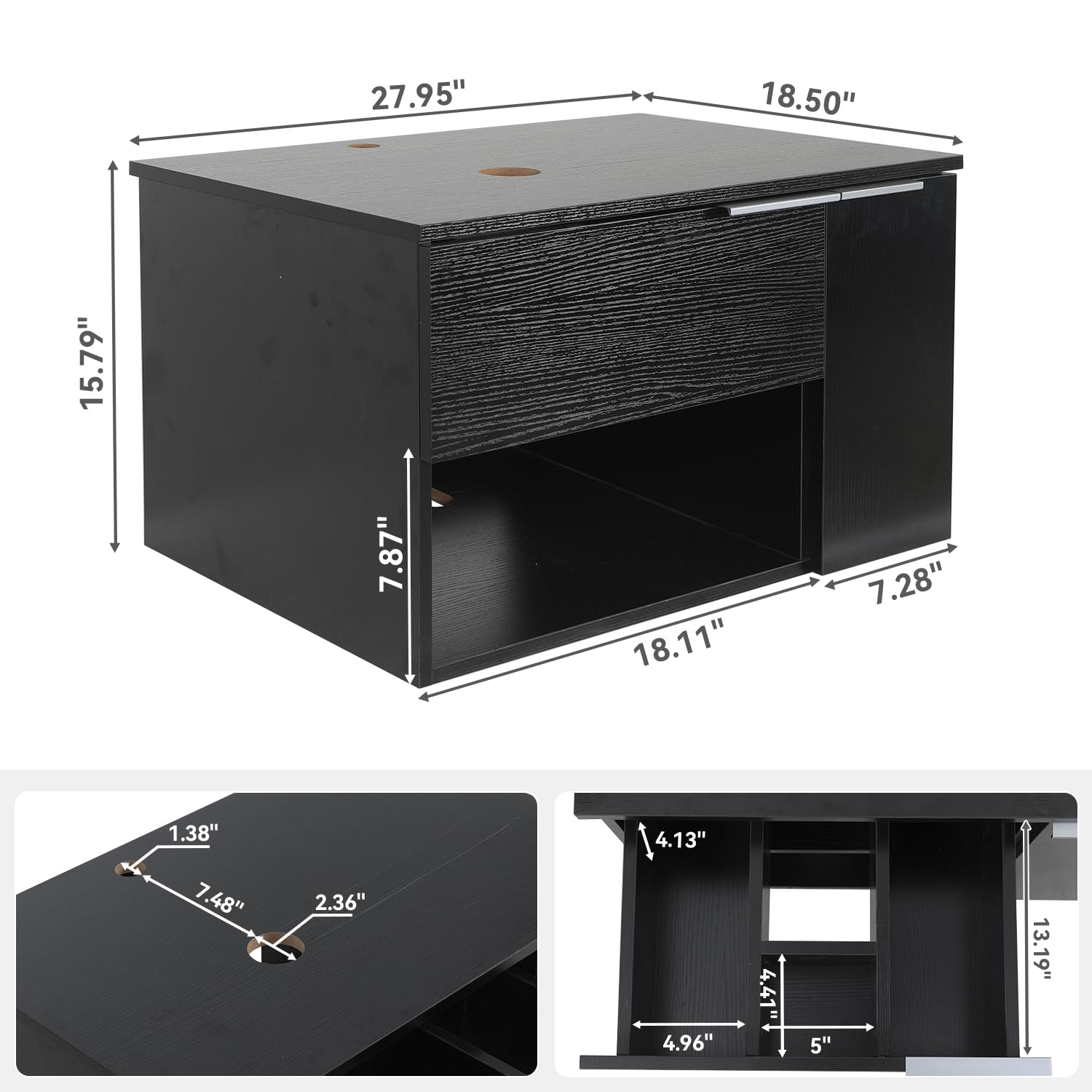 SOLIDEE 28 Inch Black Floating Bathroom Vanity with 1-Door and 1-Drawer, Modern Wall Mounted Cabinet with Black White Ceramic Vessel Sink Top