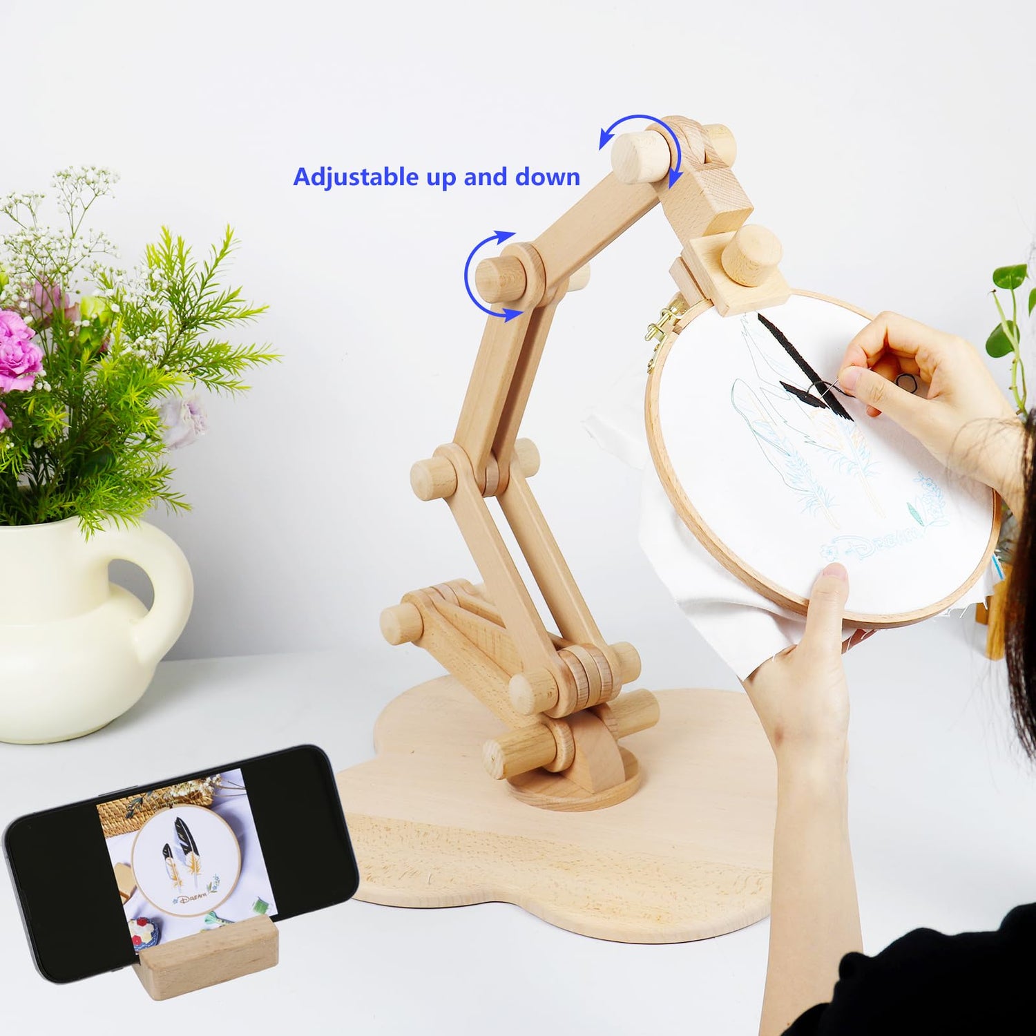 - Premium Materials: Our embroidery stand is made of natural high quality beech wood, lightweight, sturdy and wear-resistant, smooth, and without burr, making you more comfortable enjoying the process of DIY embroidery