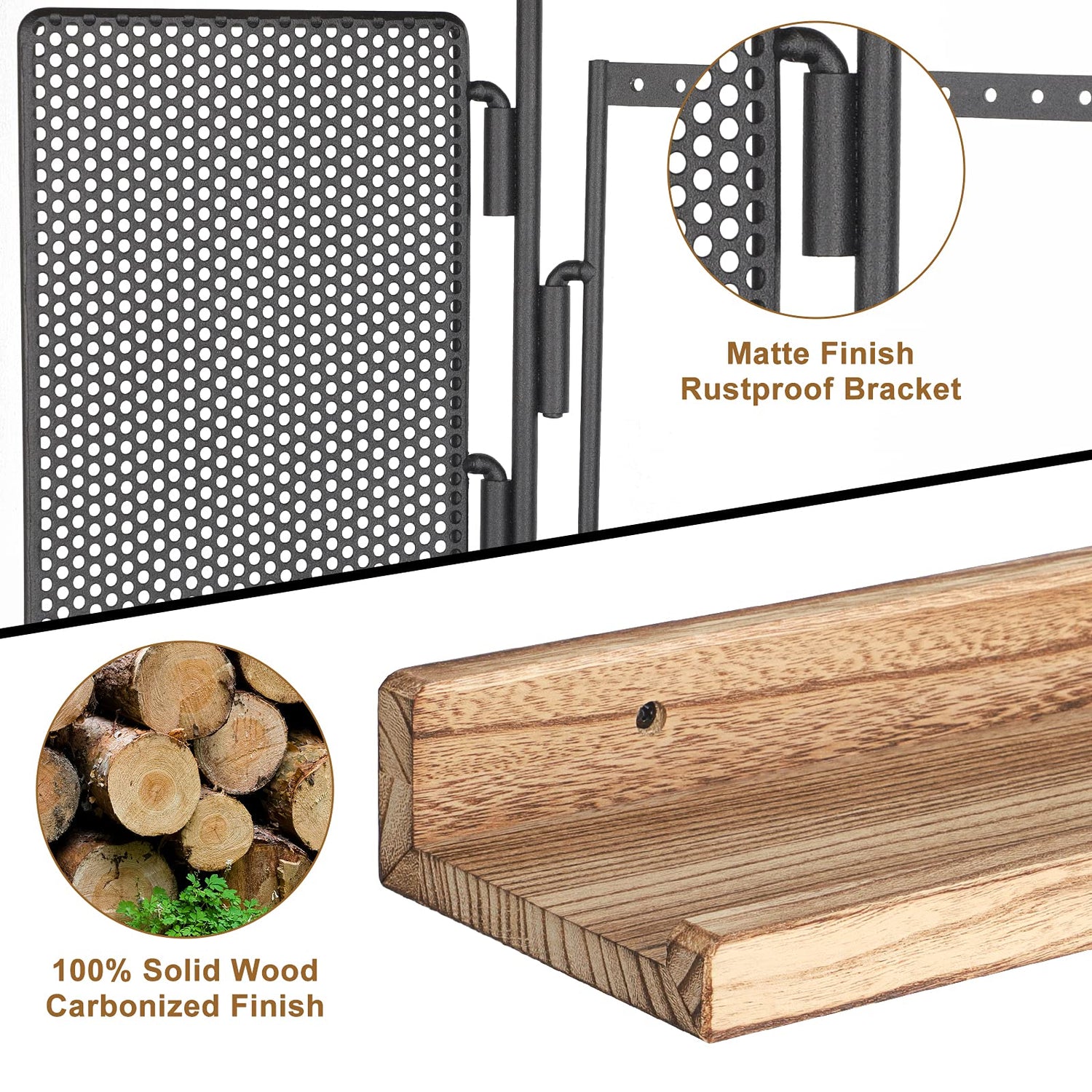 - đăRustic Wood Ledge Shelf DesignăCarbonized Black wood shelf offer additional space for organized your cosmetics neatly, release your dressers or vanity space and no more messy. Rustic and stylish look that complements a variety of decors.