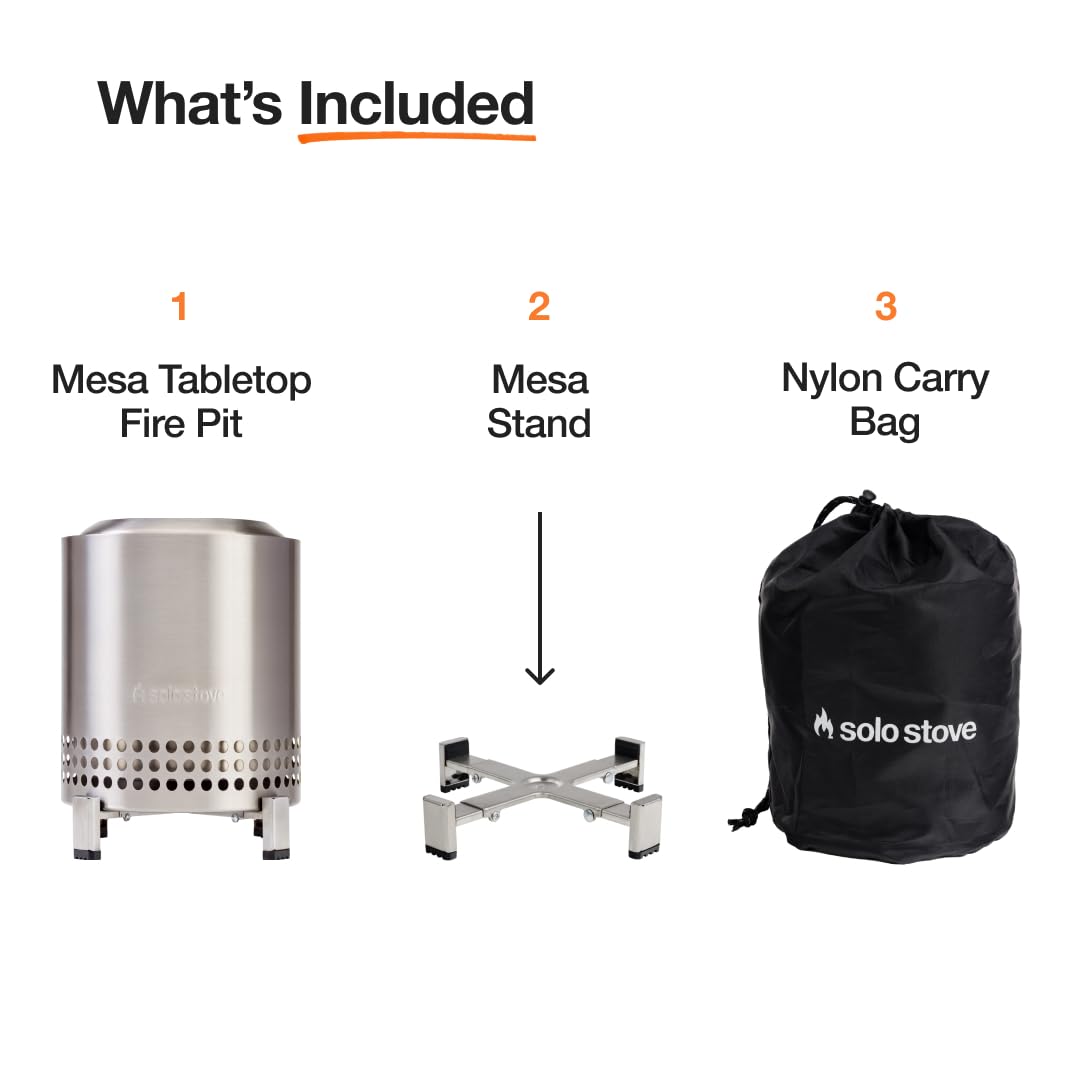 Solo Stove Mesa XL, 7 Inch Tabletop Fire Pit with Stand - Smokeless, Stainless Steel Fire Pit for Camping, Outdoor & Patio- Wood Burning or Pellet Fueled Portable Bonfire, 2.3lbs, Mulberry