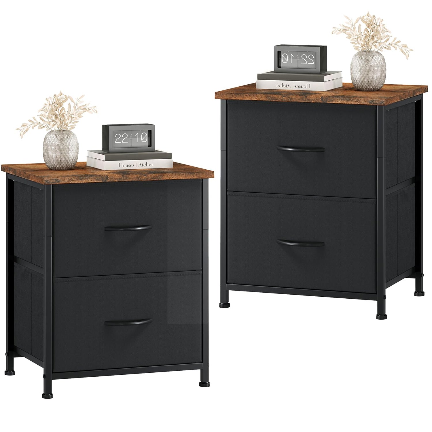 Somdot Black Nightstand Set of 2, Small Dresser for Bedroom with 2 Drawers, Bedside Table Night Stand End Table with Fabric Bins for Bedroom Kids Closet Dorm Guest Room, Black Rustic Brown