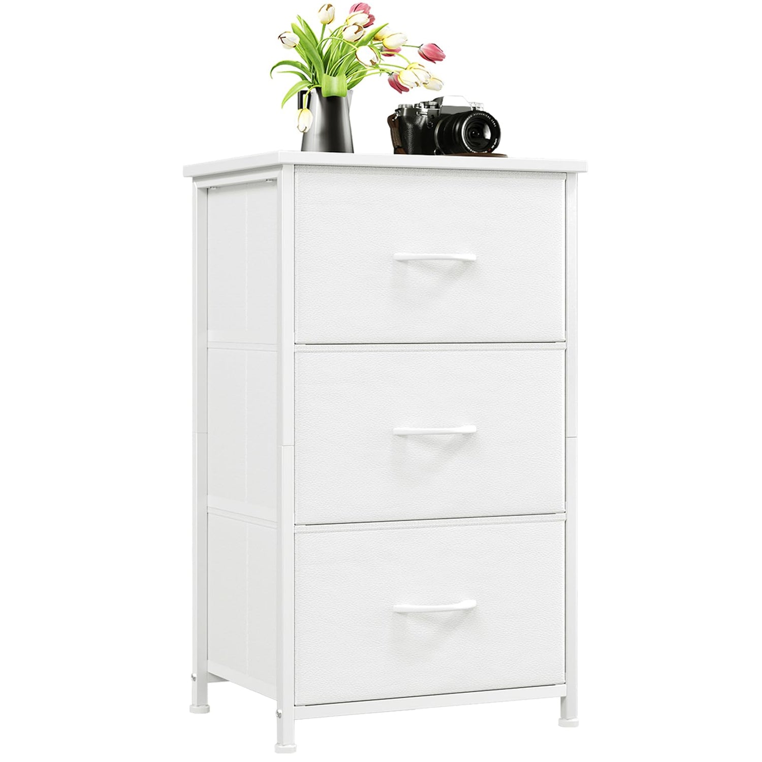 Somdot Dresser for Bedroom with 3 Drawers, Storage Organizer Chest of Drawers with Removable Fabric Bins for Closet Bedside Living Room Laundry Entryway Hallway, White Leather