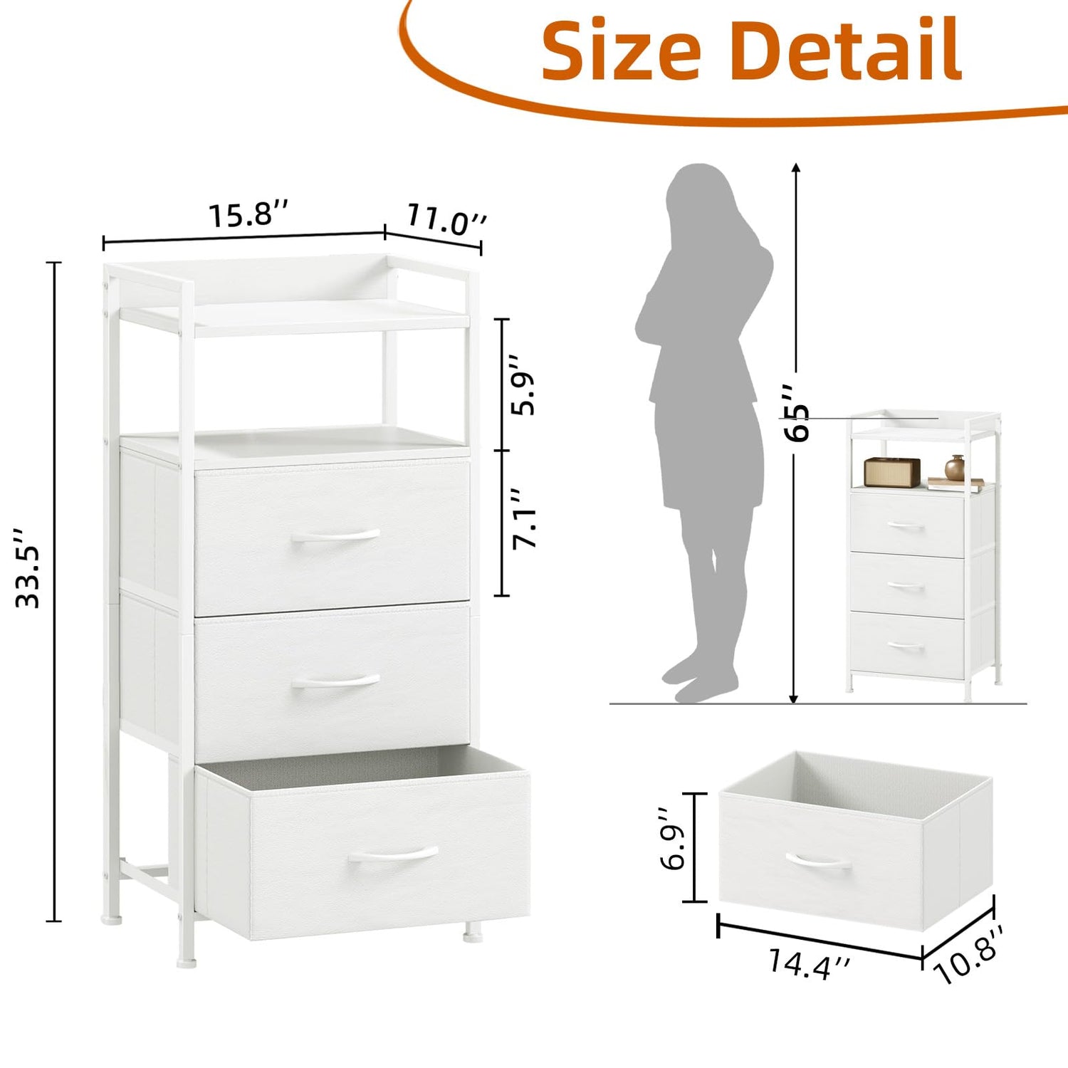 - 【Multi-functional Storage】This dresser features foldable storage drawers. Each fabric drawer offers large storage space, perfect for organizing clothes, toys, socks, underwear, scarves, blankets and other accessories. The drawers are made of PVC fabric, lightweight and durable, and won't pinch hands, also safe for to use