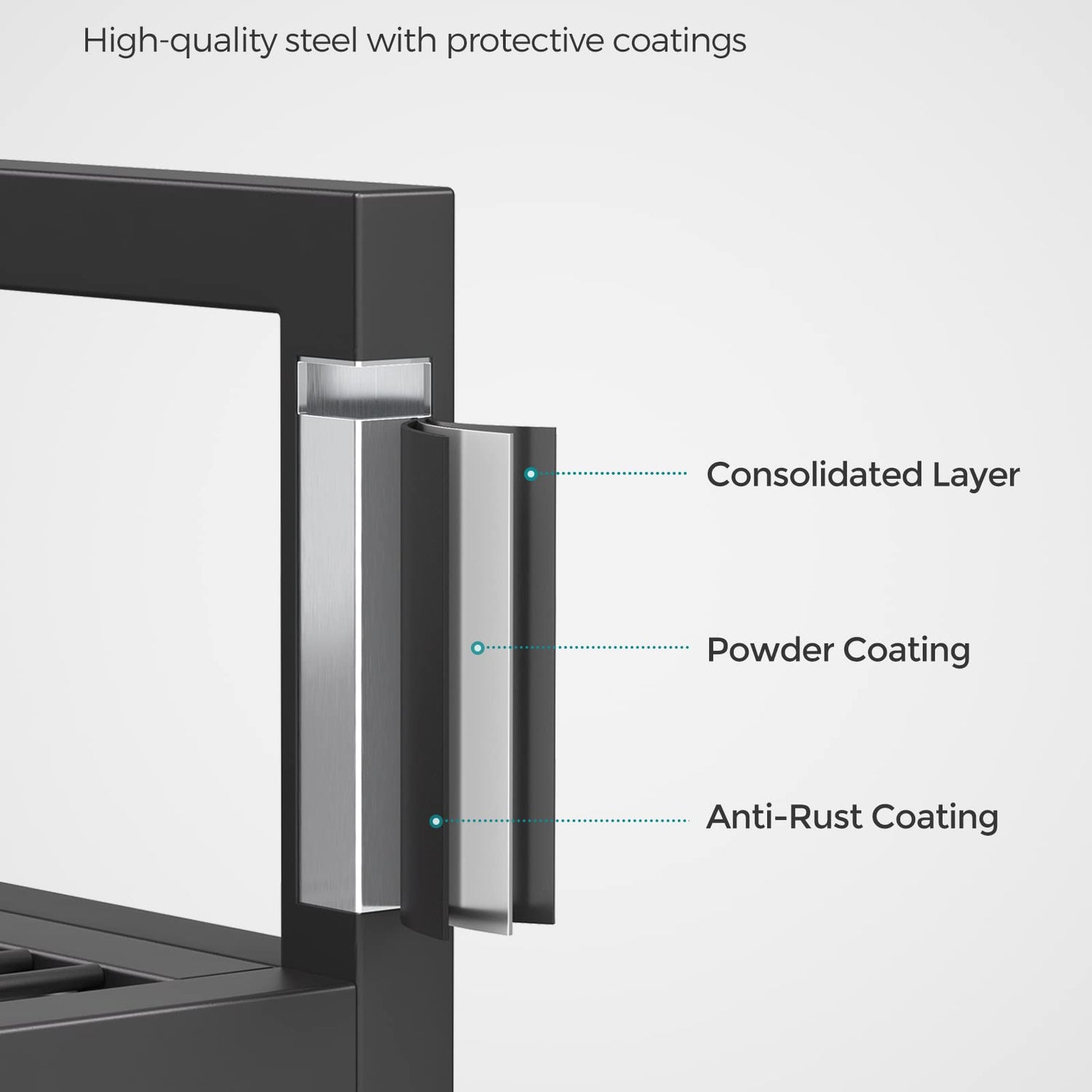 - [All-Metal Versatile Rack] The robust steel frame and mesh shelves combine into this durable storage rack. Use it in your entryway for shoes, in the kitchen for cooking utensils, and in your bathroom for toiletries for years to come