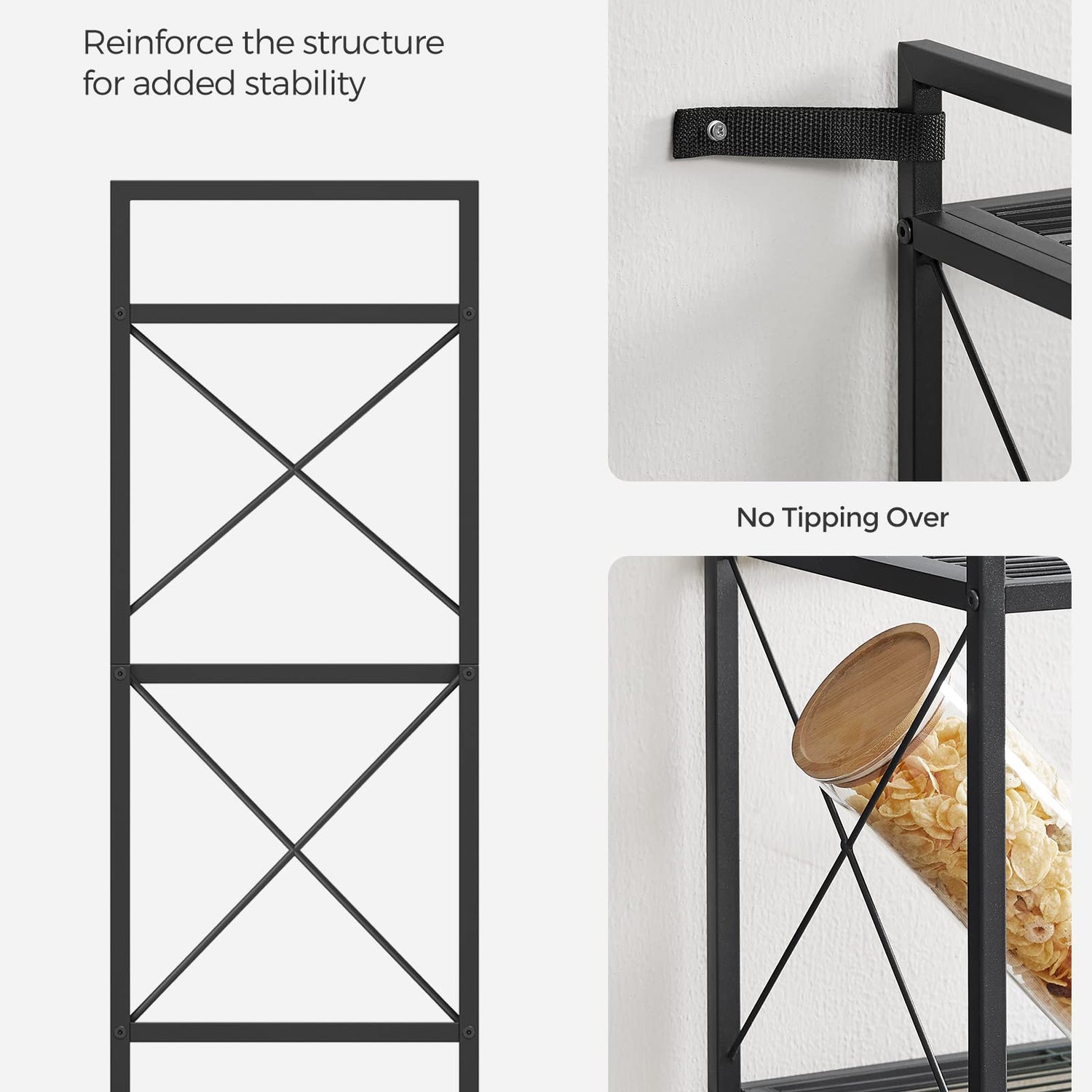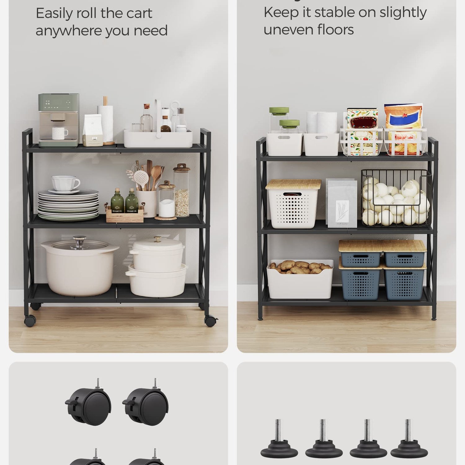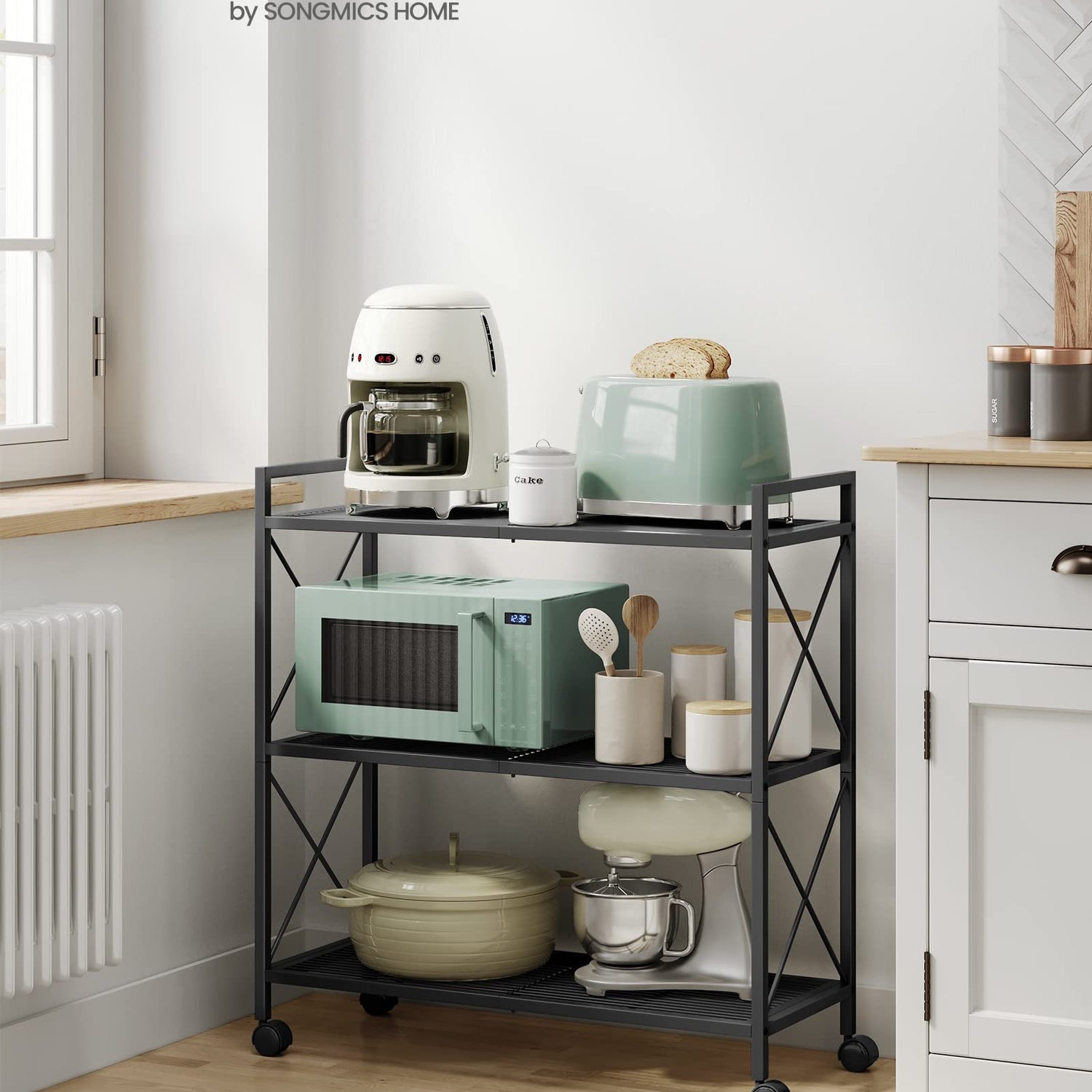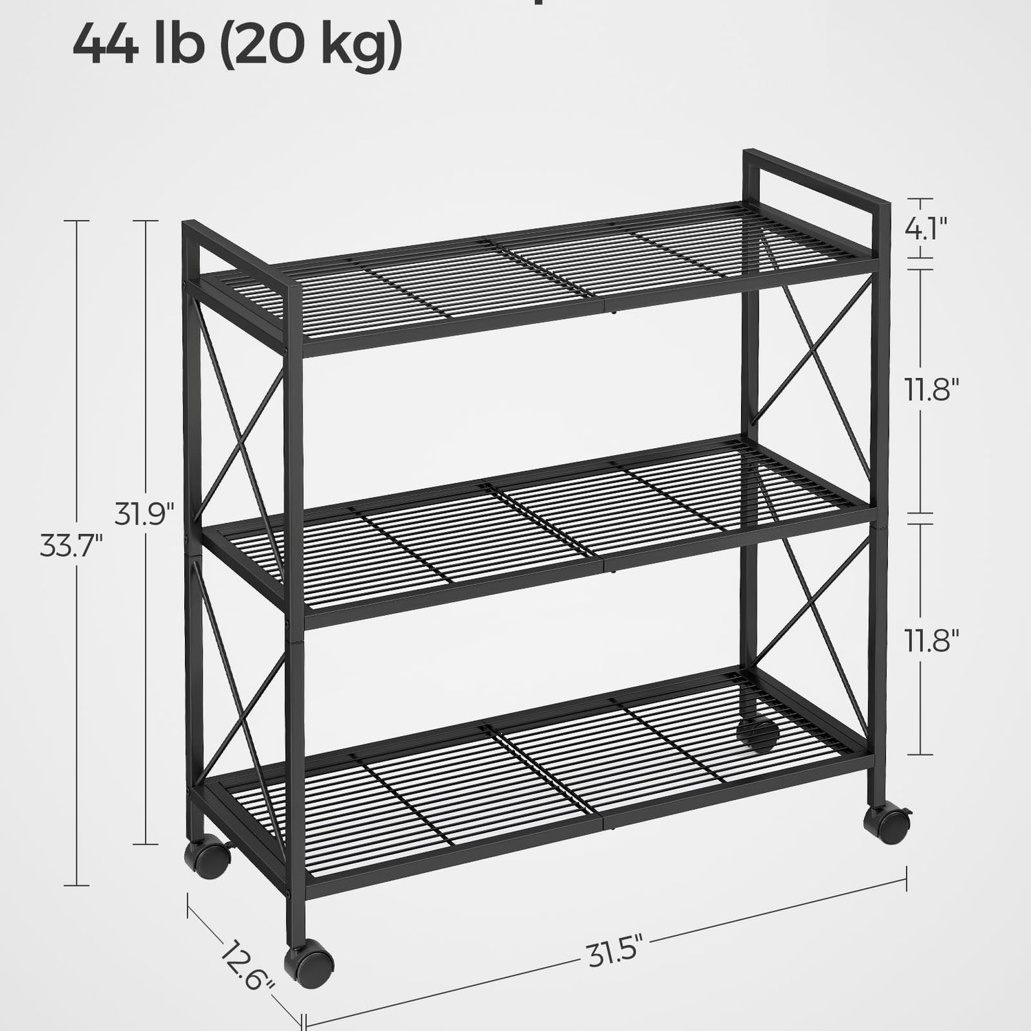 SONGMICS 3-Tier Metal Storage Rack with Wheels, Mesh Shelving Unit with X Side Frames, 31.5-Inch Width, for Entryway, Kitchen, Living Room, Bathroom, Industrial Style, Black UBSC183B01
