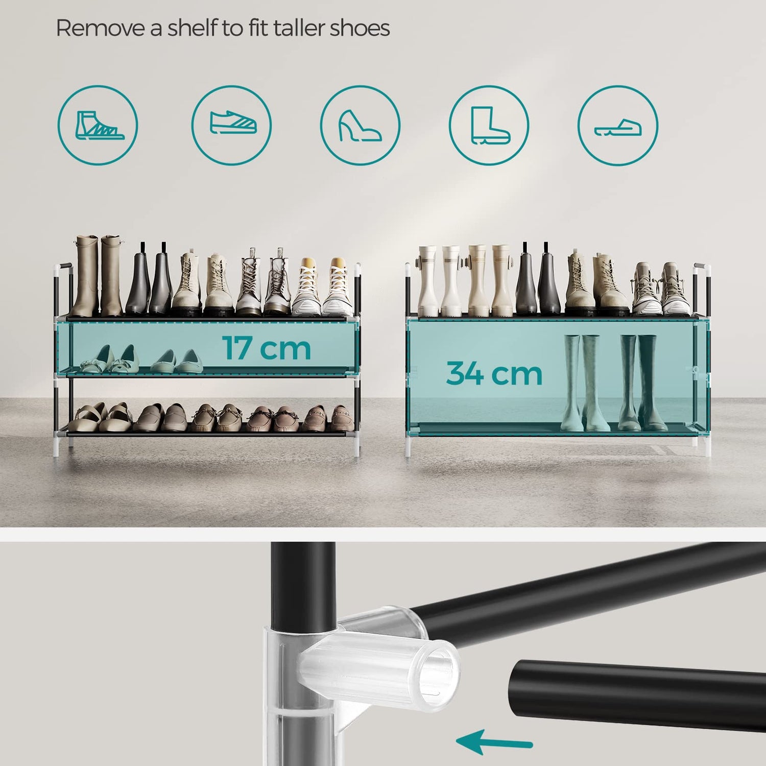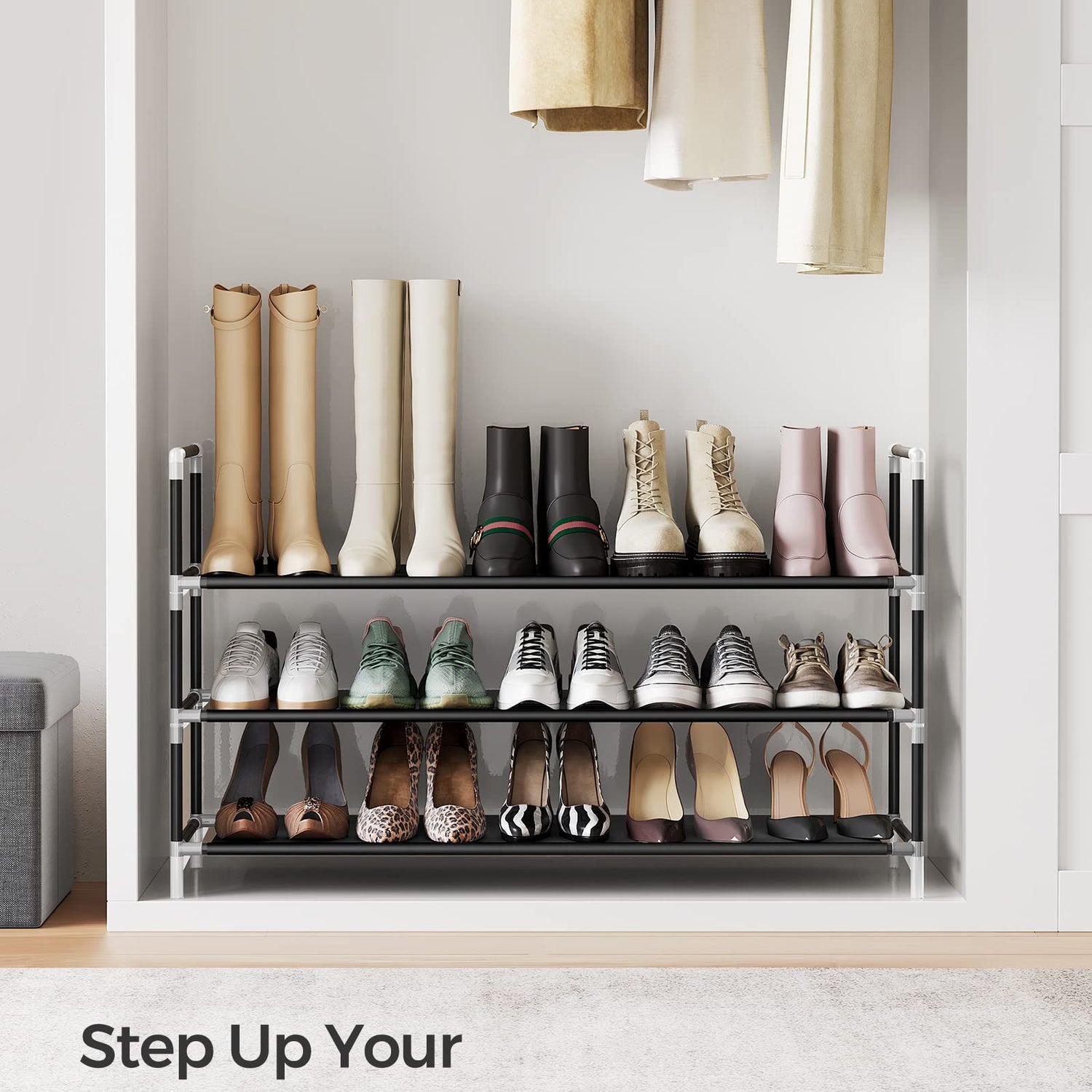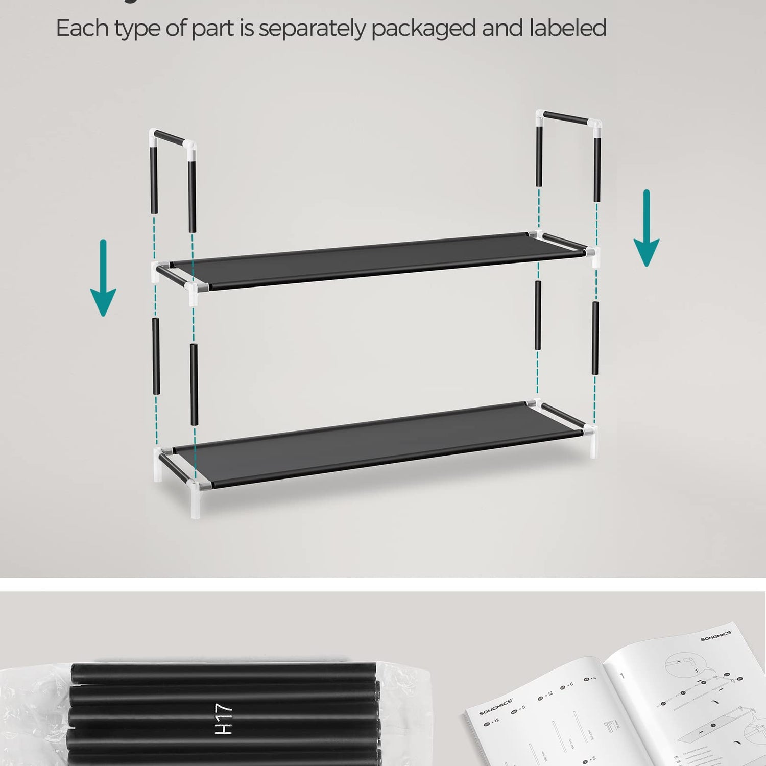 - [Easy to Assemble] Parts separated in different bags, labelled parts, and clear instructions provide you with everything you need to put this 3-tier shoe rack together quickly and easily