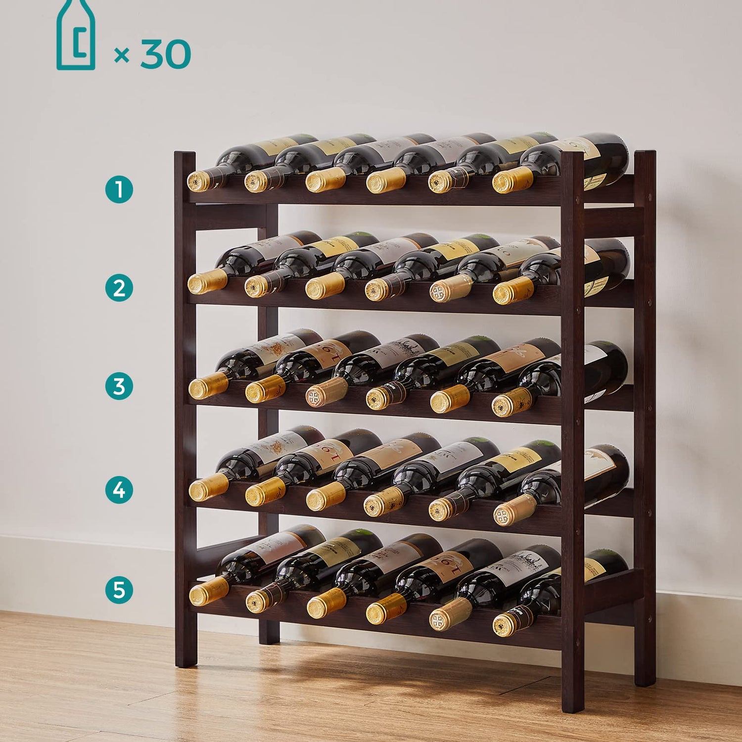 SONGMICS 30-Bottle Wine Rack, 5-Tier Freestanding Floor Bamboo Wine Holder, Display Stand Shelves, Wave Bars, Espresso UKWR25BR