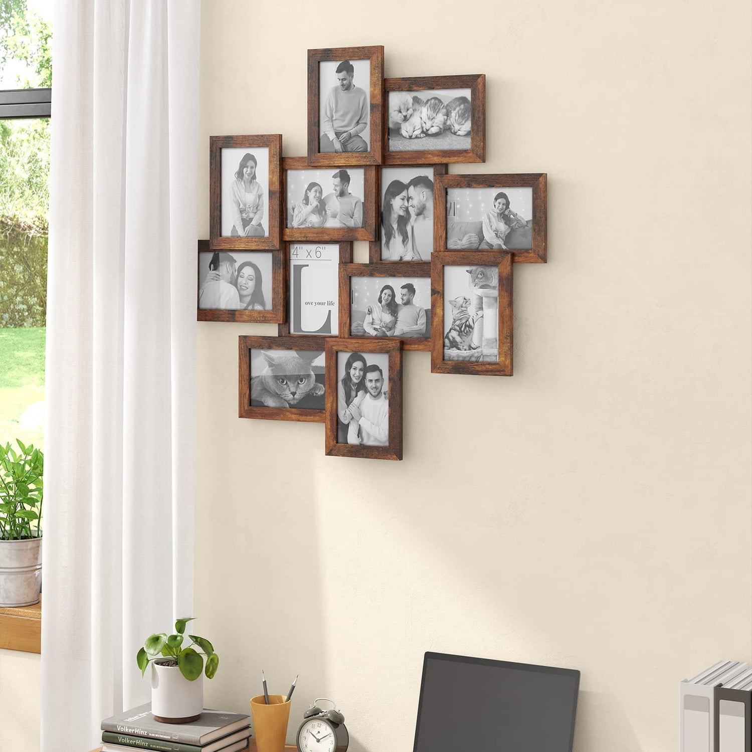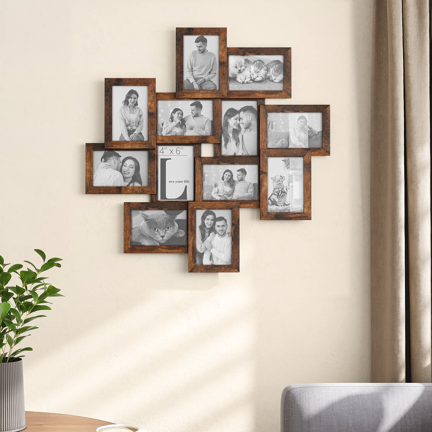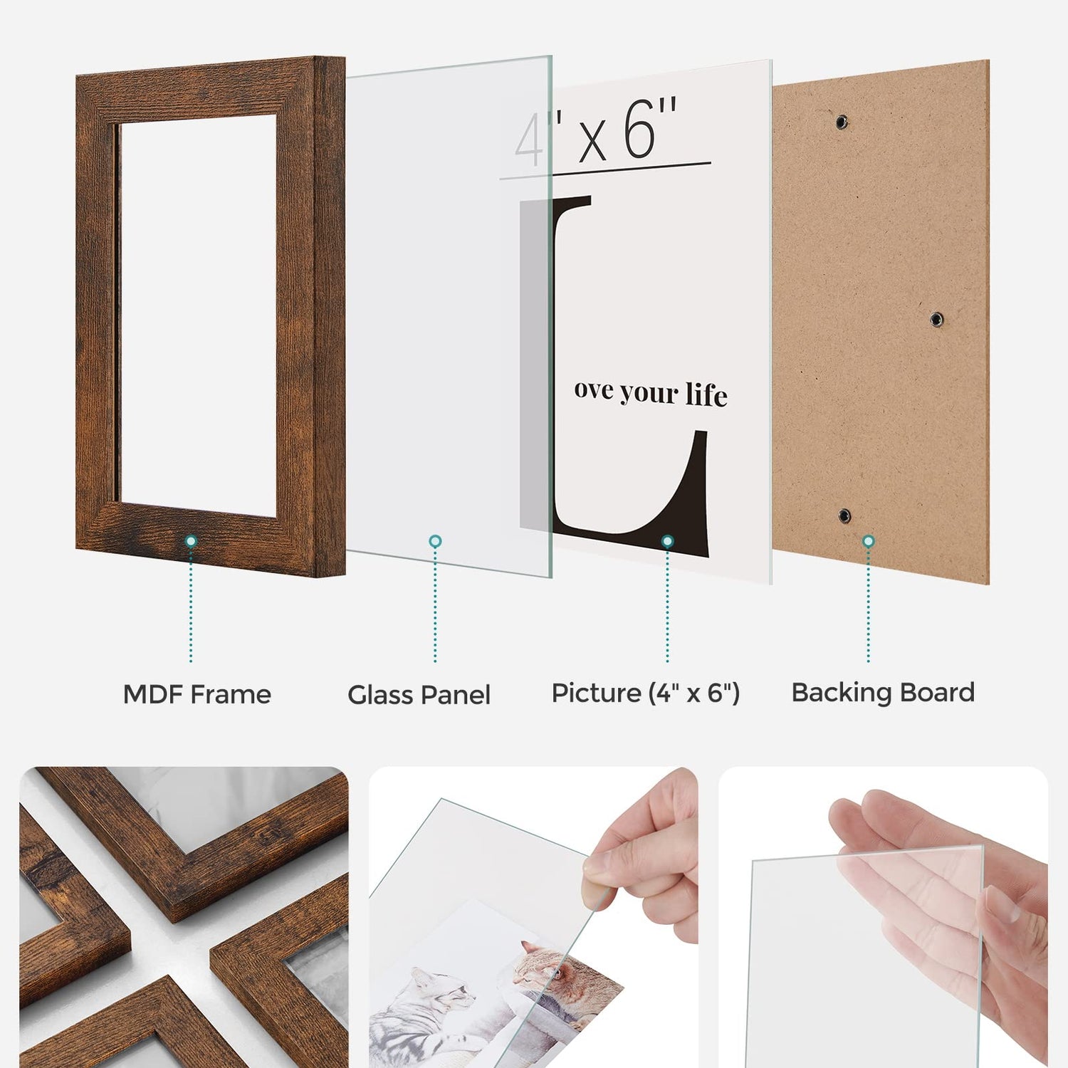 SONGMICS 4x6 Collage Picture Frames, 12-Pack Picture Frames Collage for Wall Decor, Rustic Brown Photo Collage Frame, Multi Picture Frame Set with Glass Front, Assembly Required
