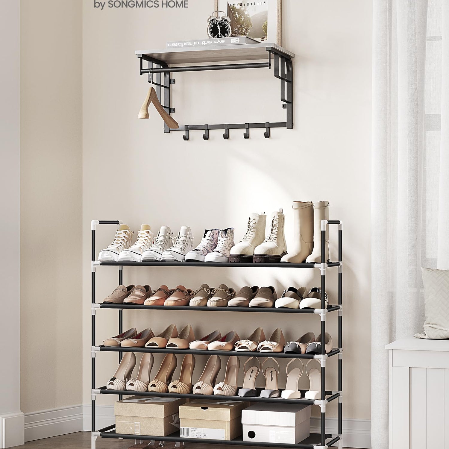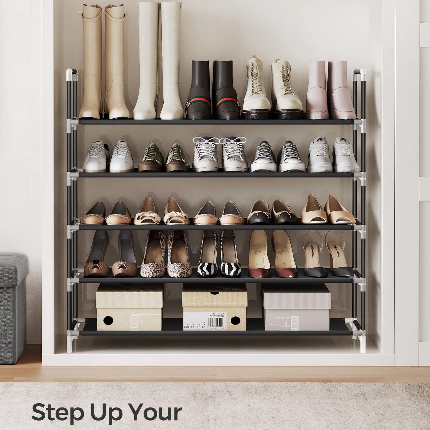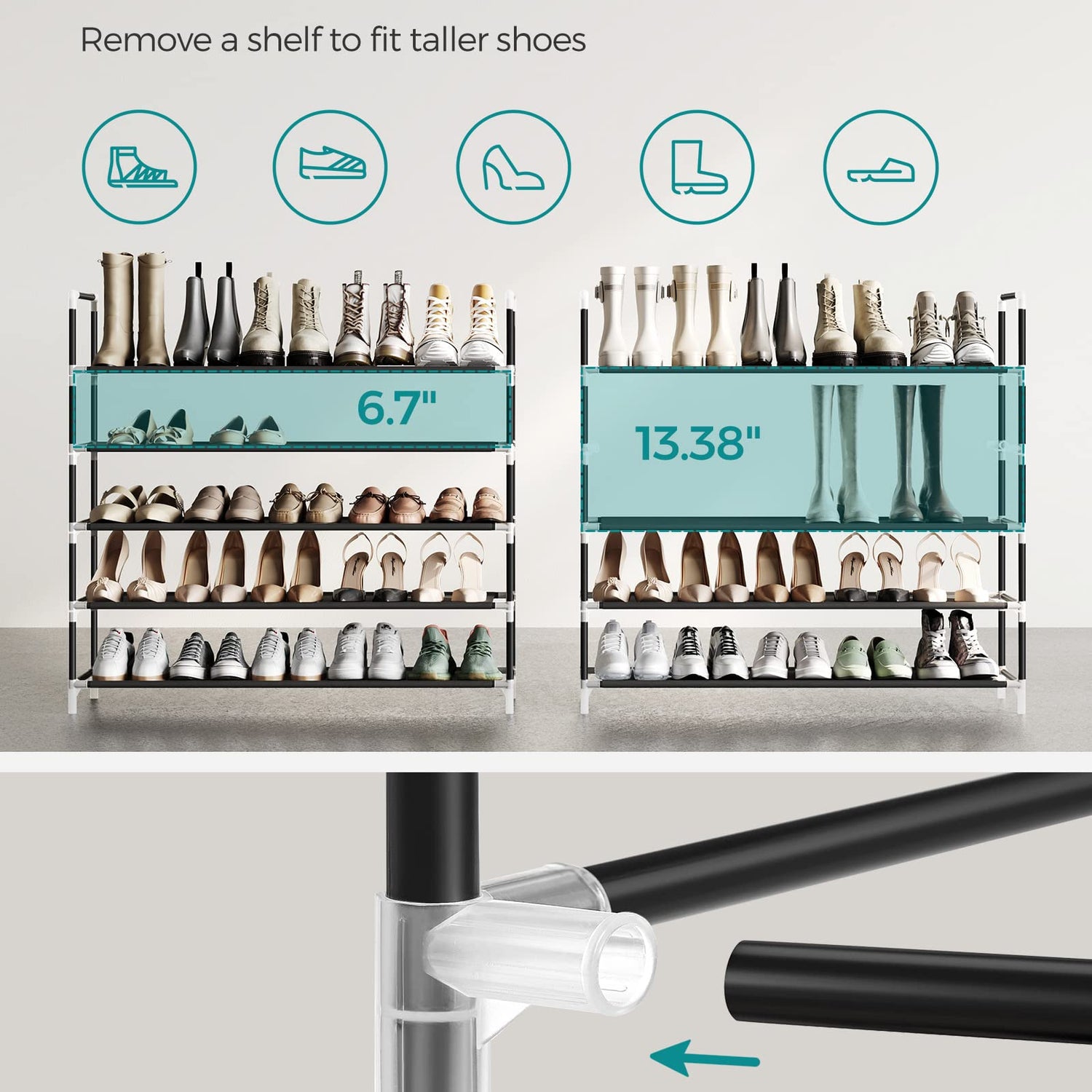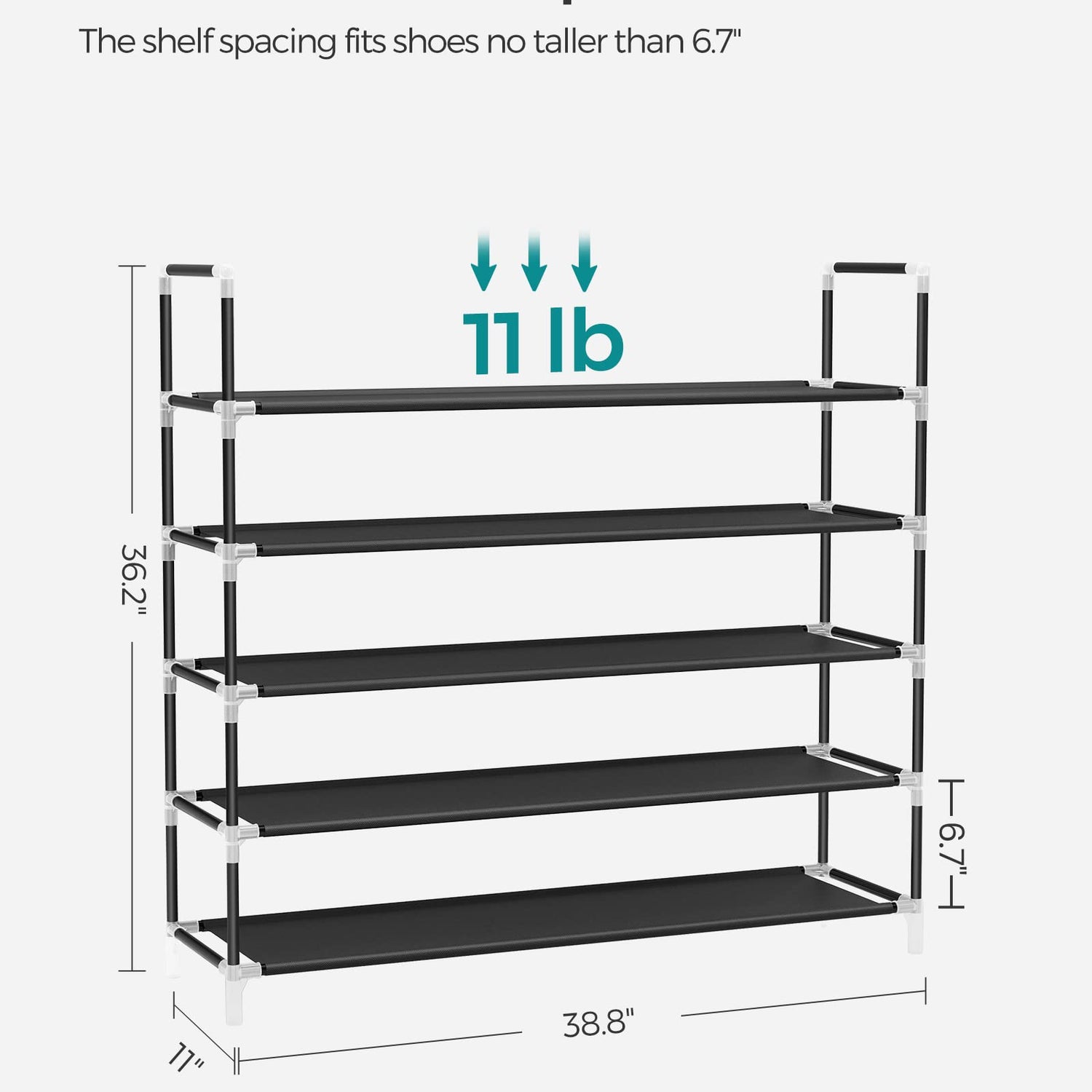 SONGMICS 5-Tier Shoe Rack, Shoe Storage for Hallway Closet, Slim and Space-Saving, Metal Frame, Non-Woven Fabric Shelves, Black ULSH55H