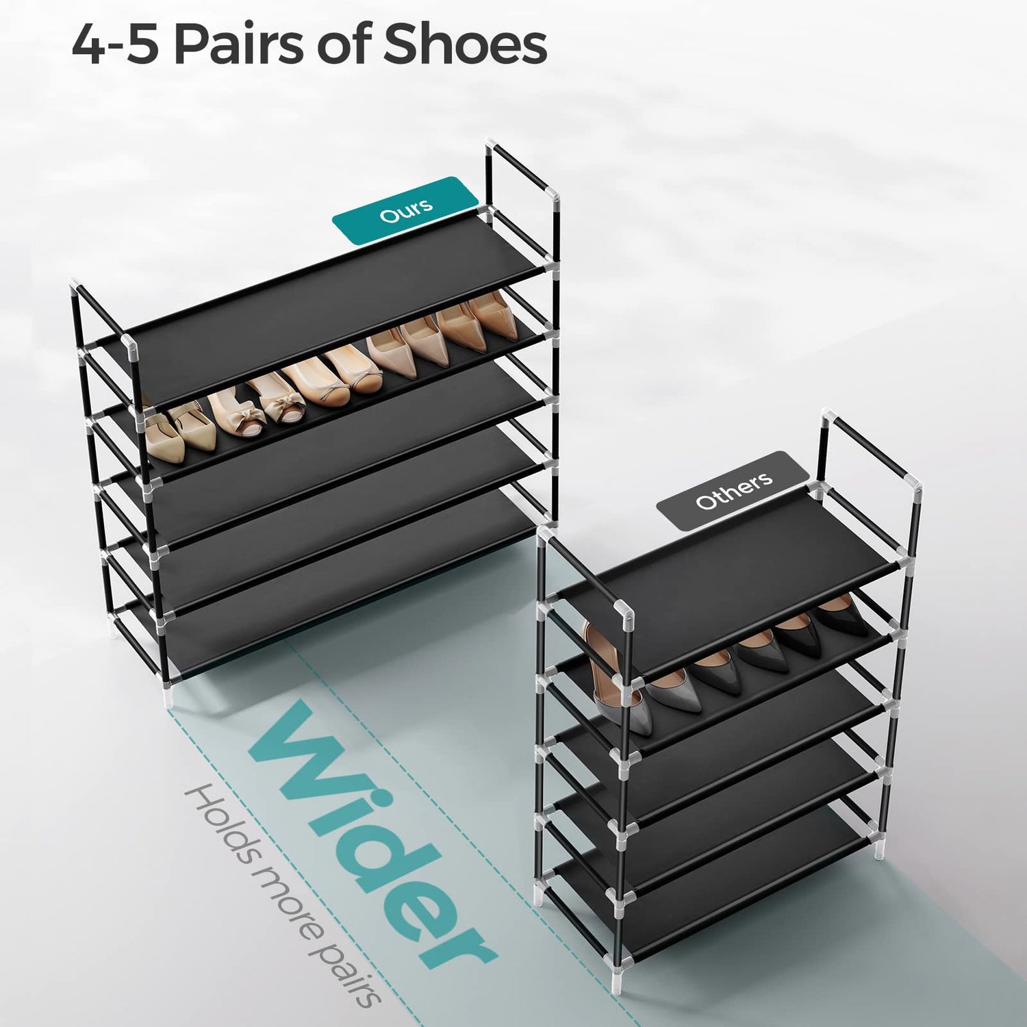 - [Space for Every Pair] With a length of 38.8'', 4-5 pairs of shoes can comfortably sit on each shelf, totaling to 20-25 pairs. The 6.7'' spacing between the shelves allows you to store any type of footwear, from sneakers to high heels