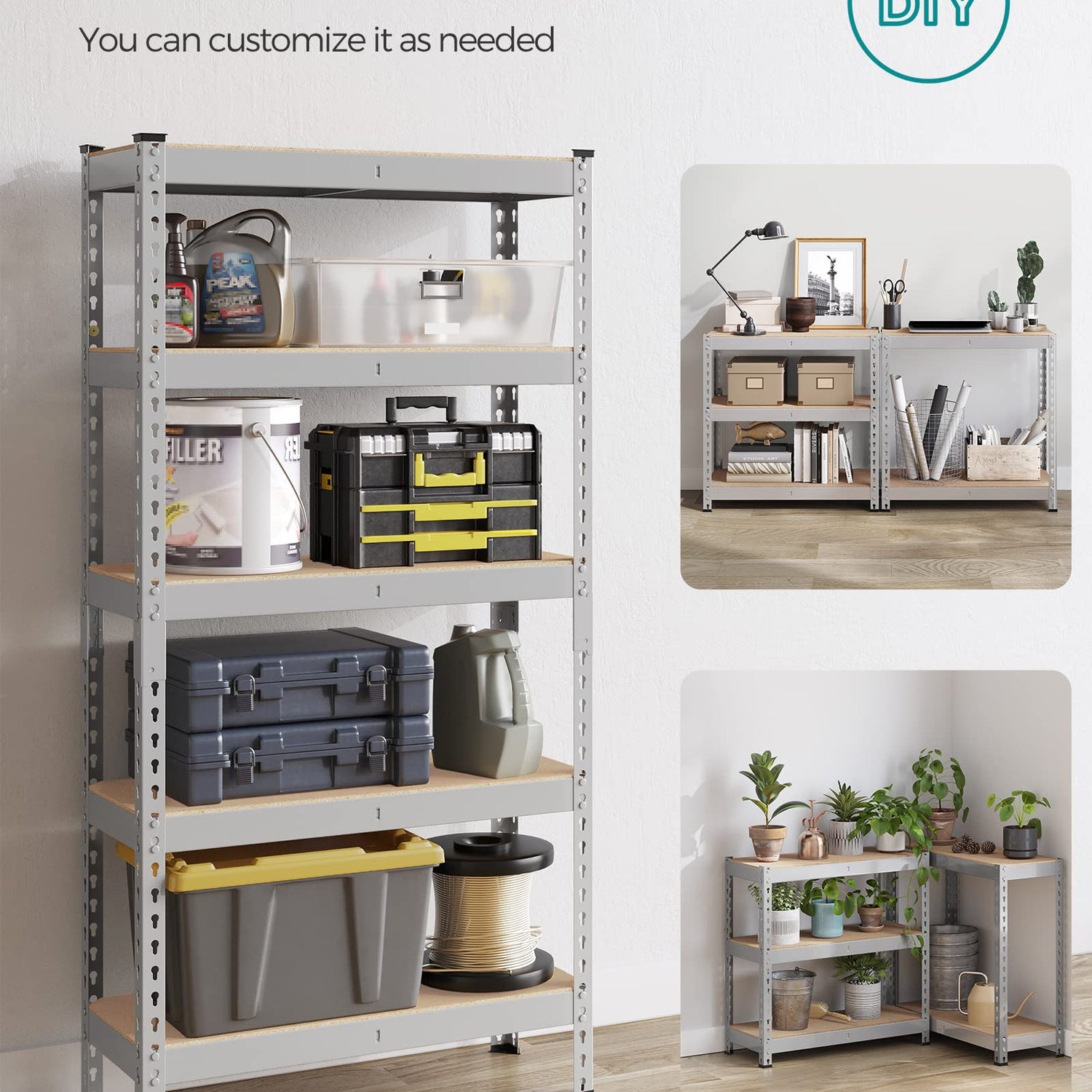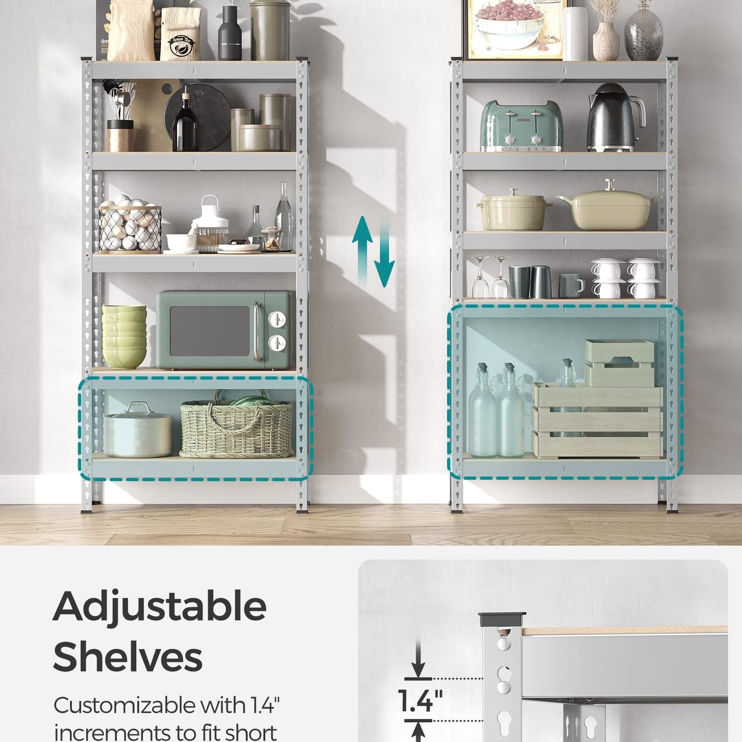 - [Adjustable Shelves] You can adjust the height of each shelf in at least 1.4" increments, allowing you to easily store various sized items, from boxes and containers to sports equipment and tools, in a convenient and organized manner