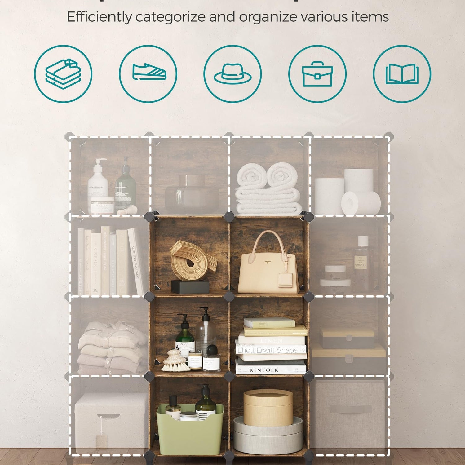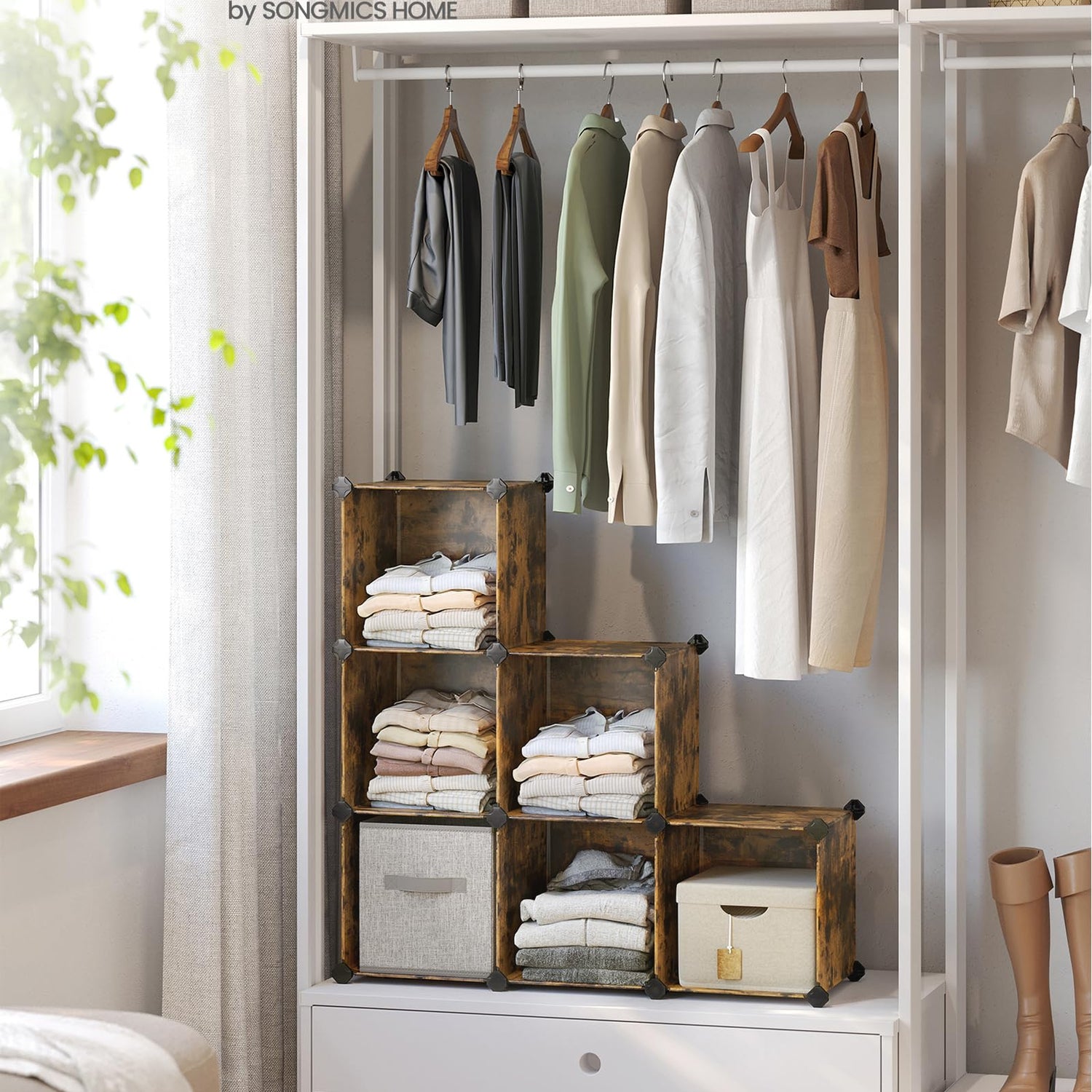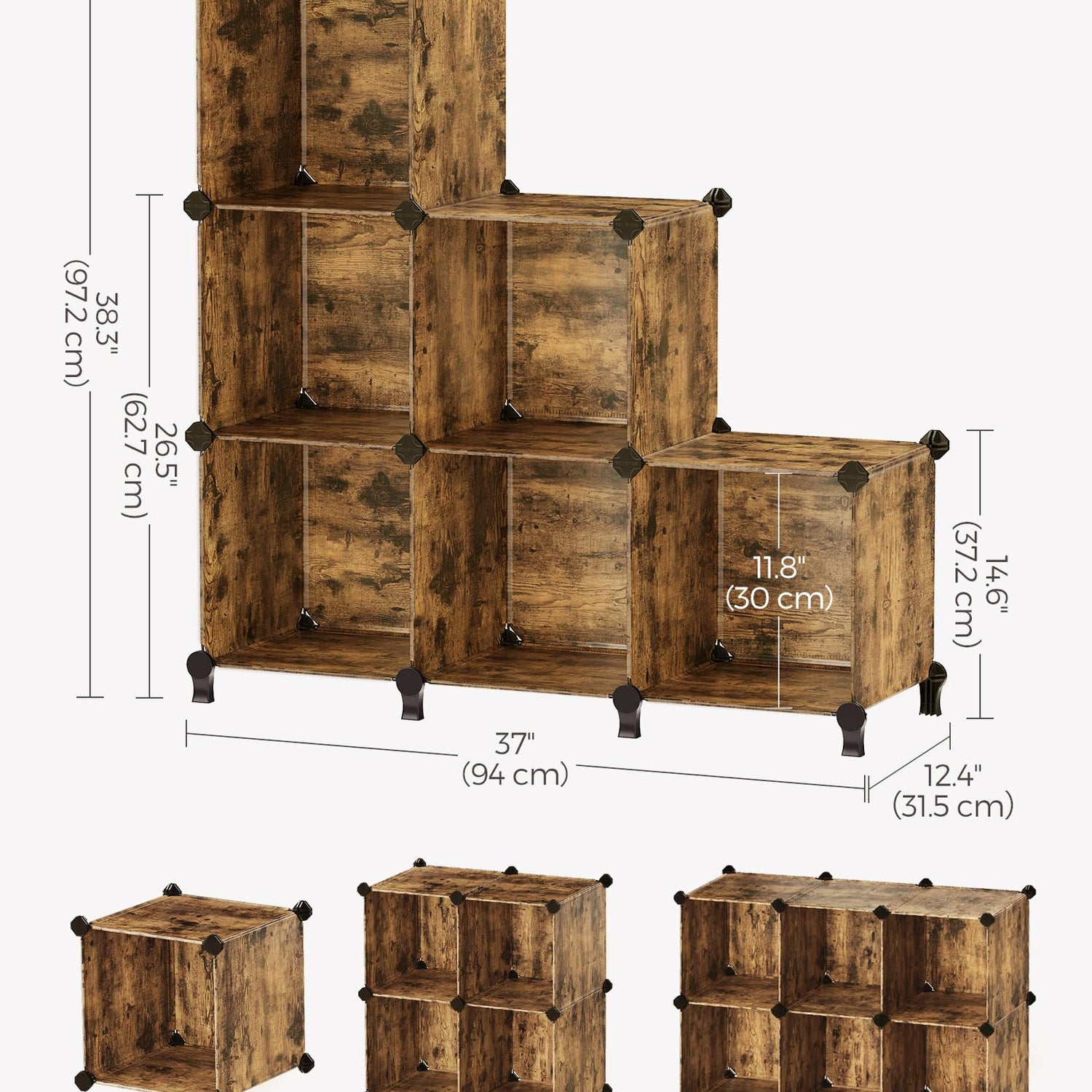 SONGMICS 6 Cube Storage Organizer, DIY Closet Shelf, Plastic Clothes Organizer, Modular Bookcase, 11.8 x 11.8 x 11.8 Inch Cubes, with Feet and Rubber Mallet, Rustic Brown ULPC111A01