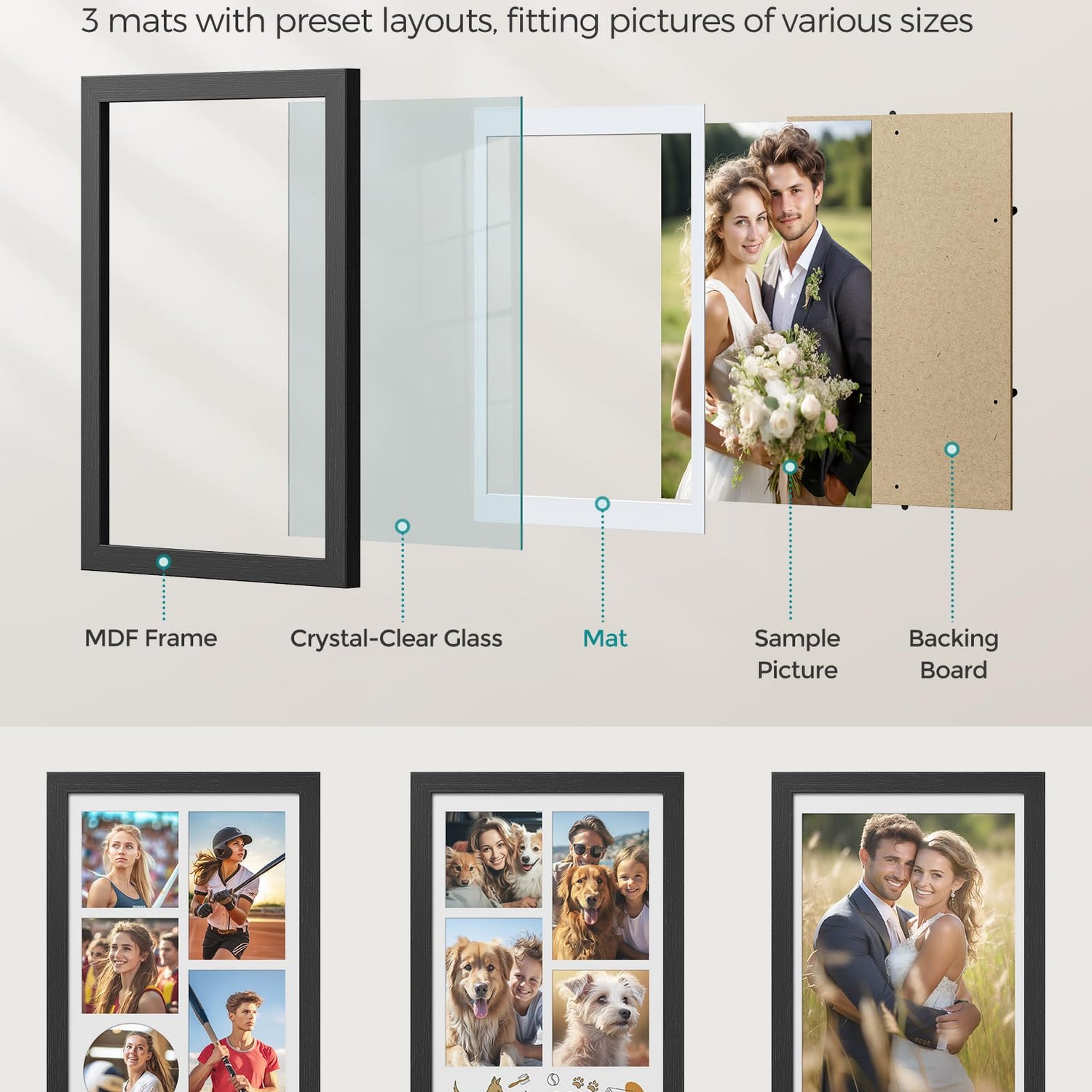 - [Quality Picture Frame] Crafted from durable MDF, each collage frame features crystal-clear glass that keeps dust at bay and resists scratches. Your precious memories are perfectly protected and clearly showcased