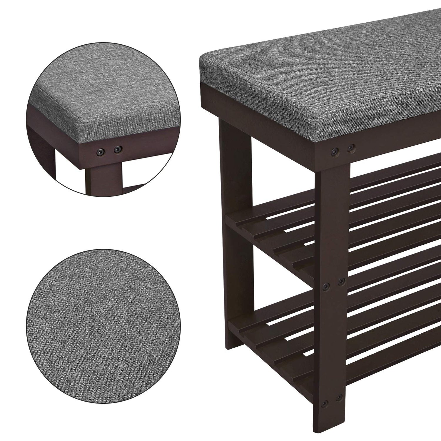 SONGMICS Bamboo Shoe Bench, 3-Tier Shoe Rack Organizer for Entryway, Living Room, Bench Seat Holds Up to 300 lb, 11.9 x 28.3 x 19.2 Inches, Rustic Walnut and Slate Gray ULBS604CG
