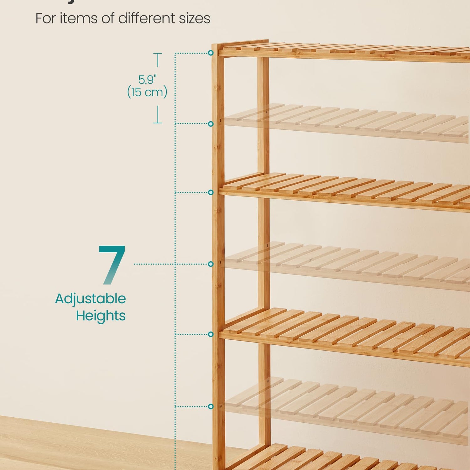 - 【SLATTED BAMBOO SHELVES】Place your items with confidence-crafted from quality bamboo, this rack boasts impressive strength (each shelf holds up to 22 lb). The slatted design allows water to pass through, preventing warping and ensuring a long lifespan
