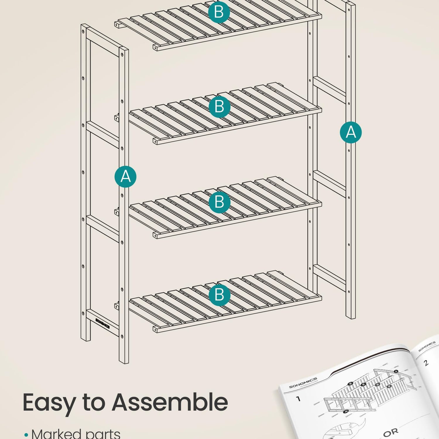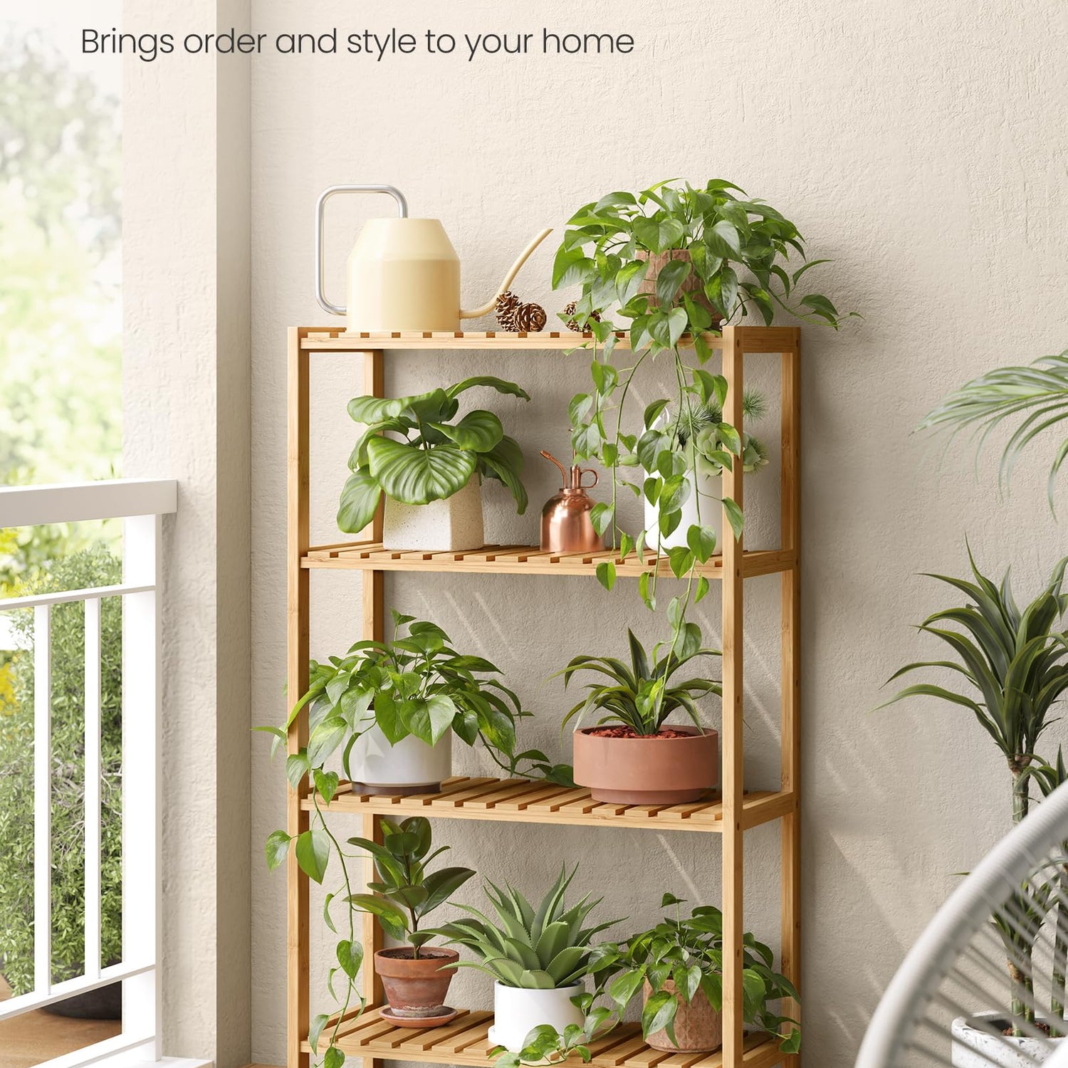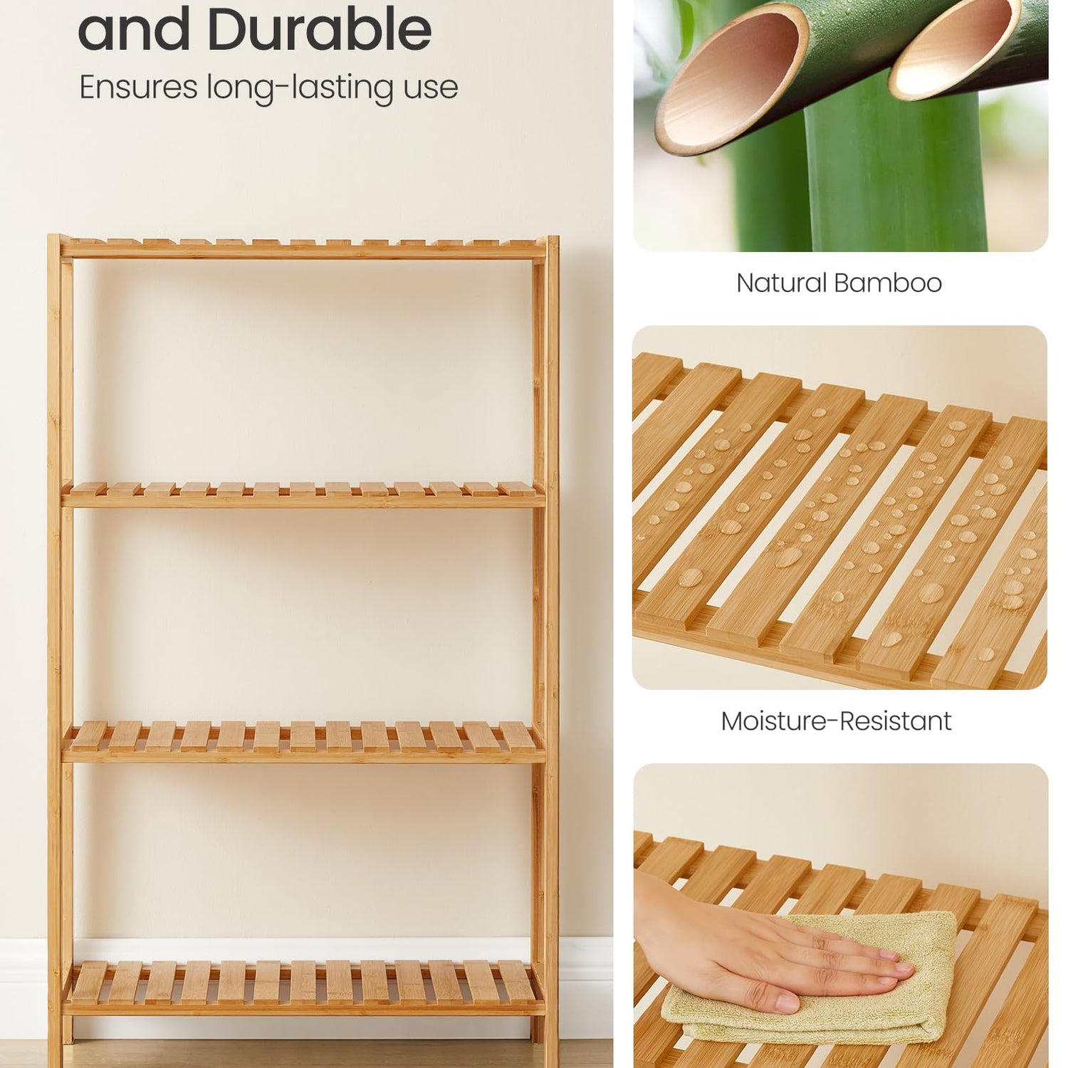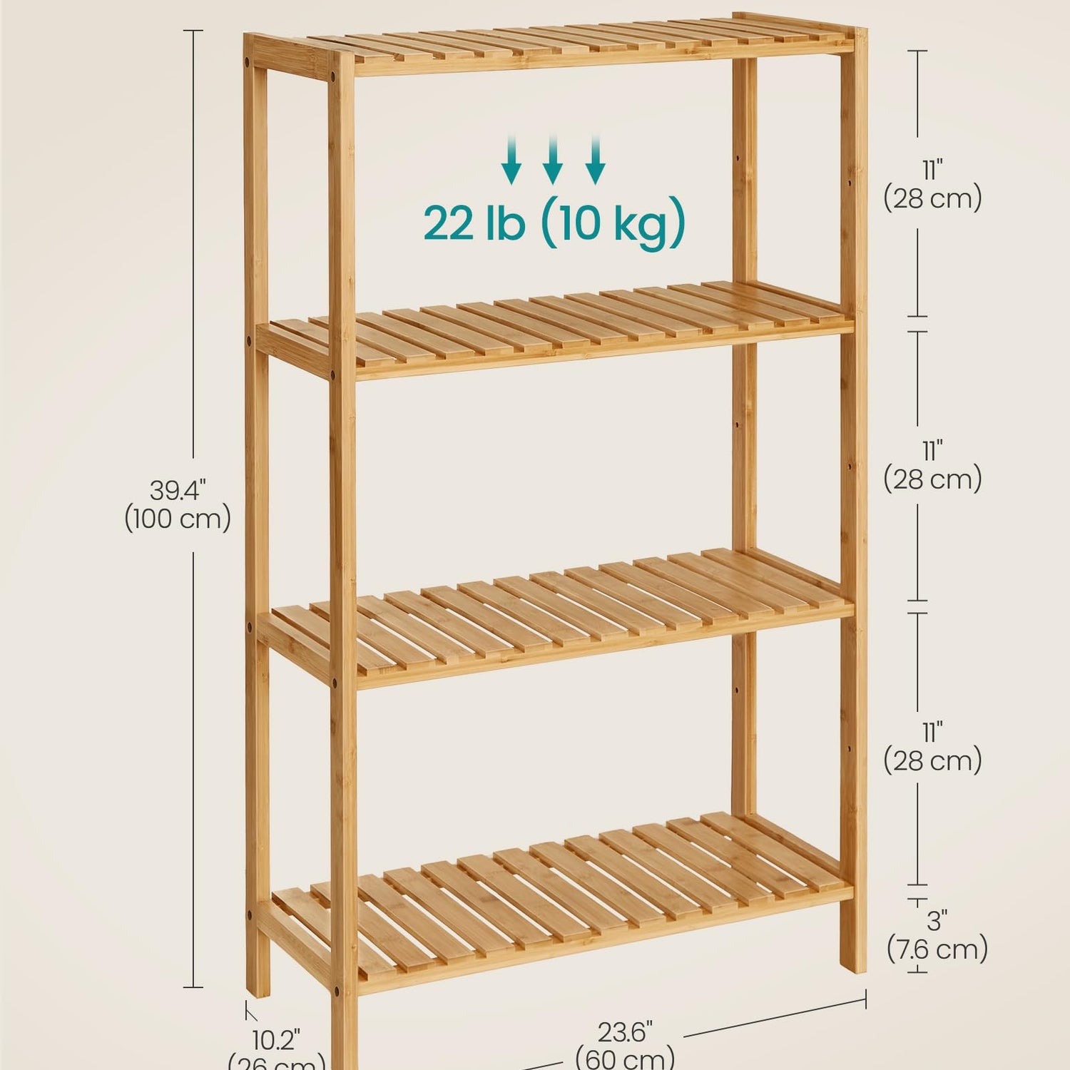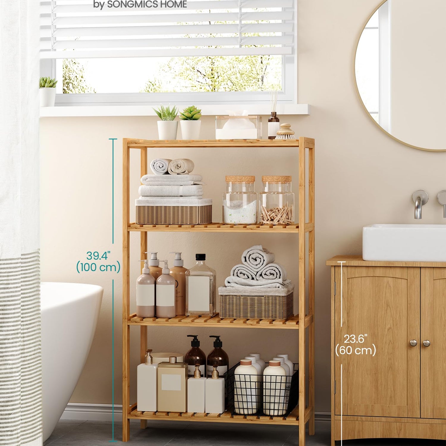 SONGMICS Bamboo Storage Shelf, 4-Tier Shelving Unit, Multifunctional, in The Entryway, Bathroom, Living Room, Balcony, Kitchen, 10.2 x 23.6 x 39.4 Inches, Natural UBCB034Y01