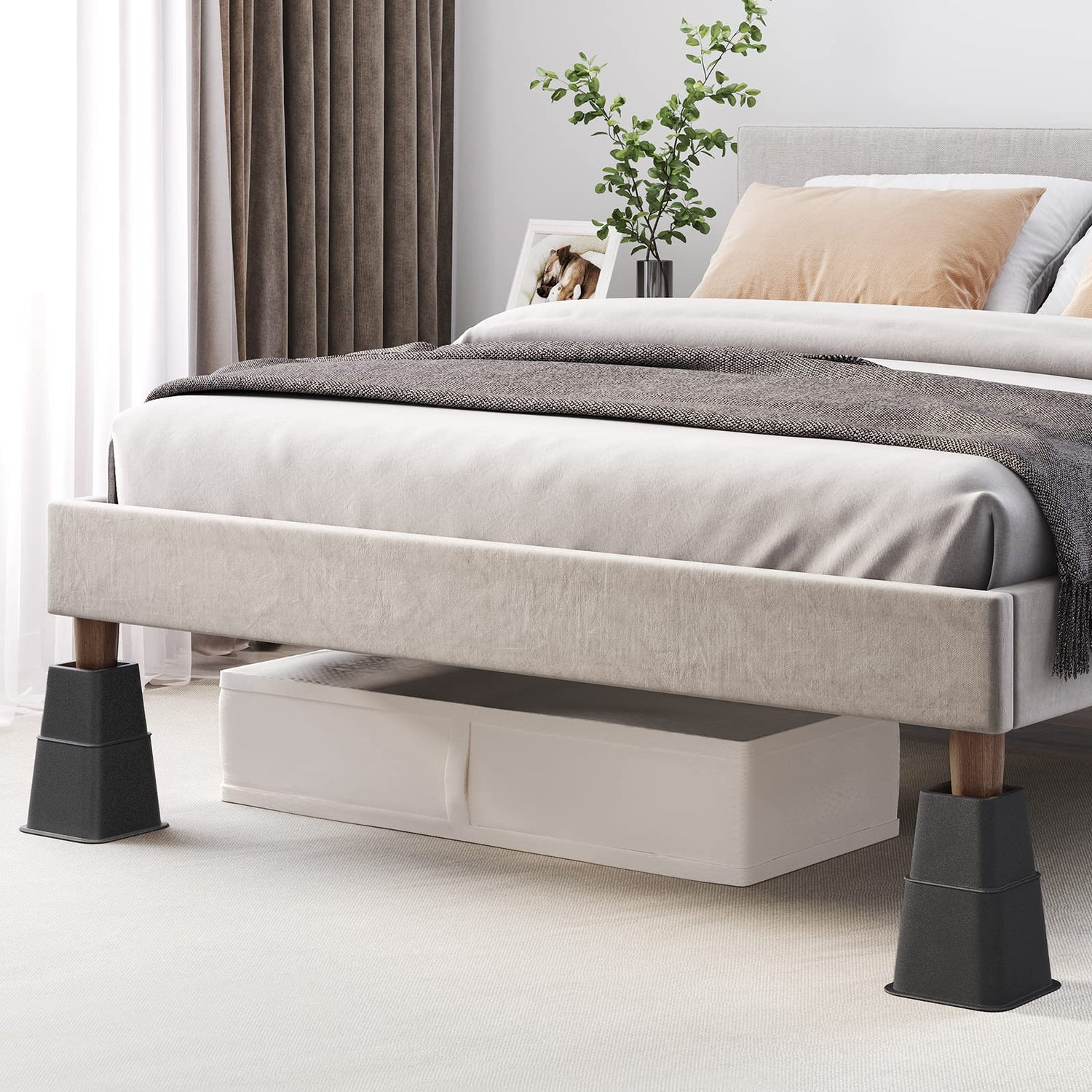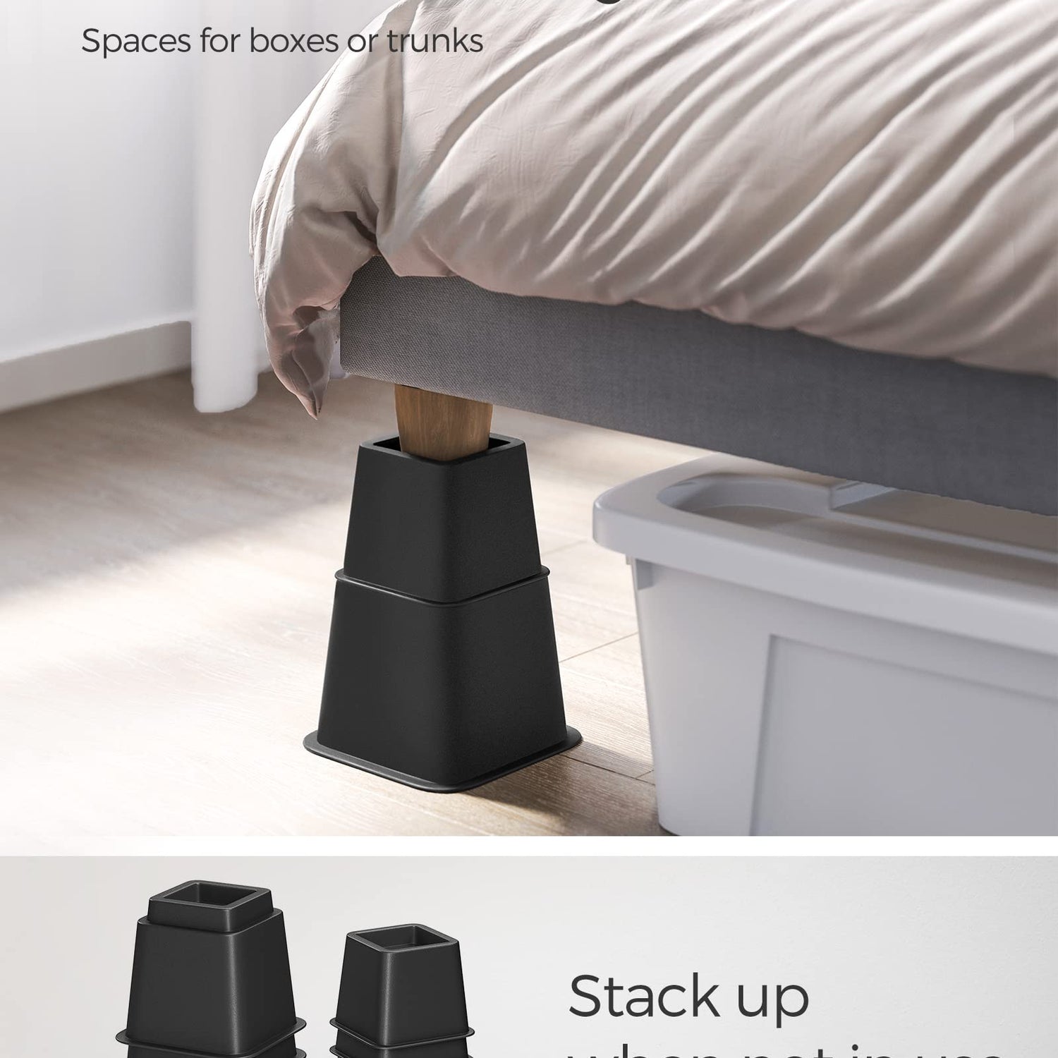 - [Extra Conveniences] These furniture risers not only create extra space under the bed for storing bins or boxes, but also can be stacked up to save space when not in use