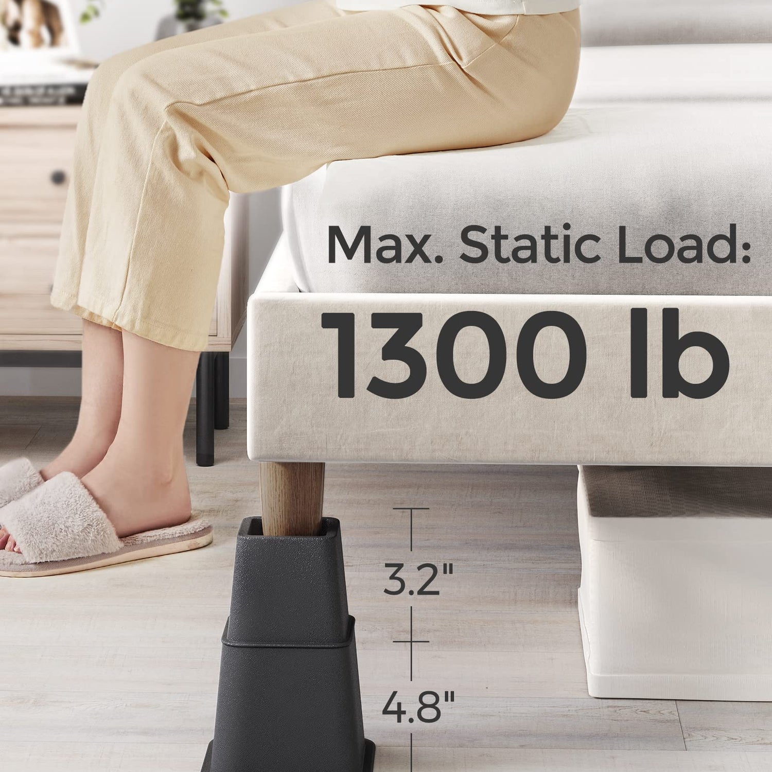 - [High Load Capacity] Made of heavy-duty PP plastic with reinforced ribs, these bed risers can support up to 1300 lb so anything from a twin to a king will feel steady