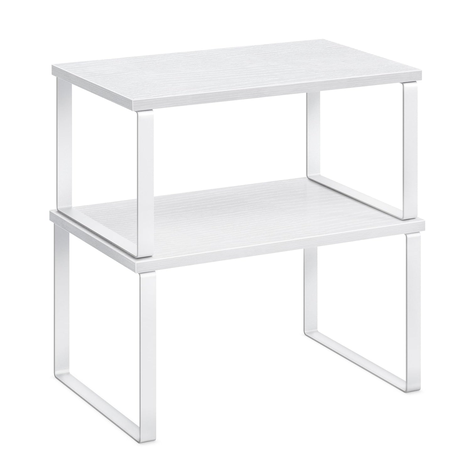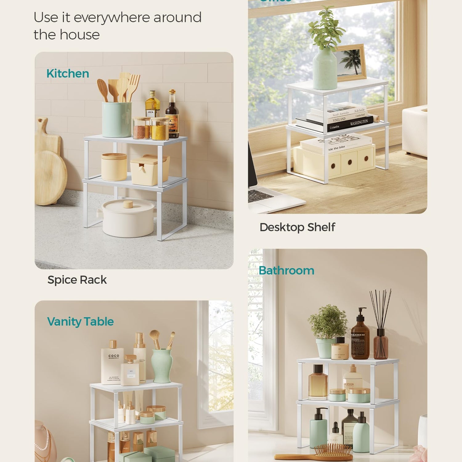SONGMICS Cabinet Organizer Shelf, Set of 2 Kitchen Counter Shelves, Kitchen Storage, Spice Rack, Stackable, Expandable, Metal and Engineered Wood, Cloud White and Snow White UKCS02W01