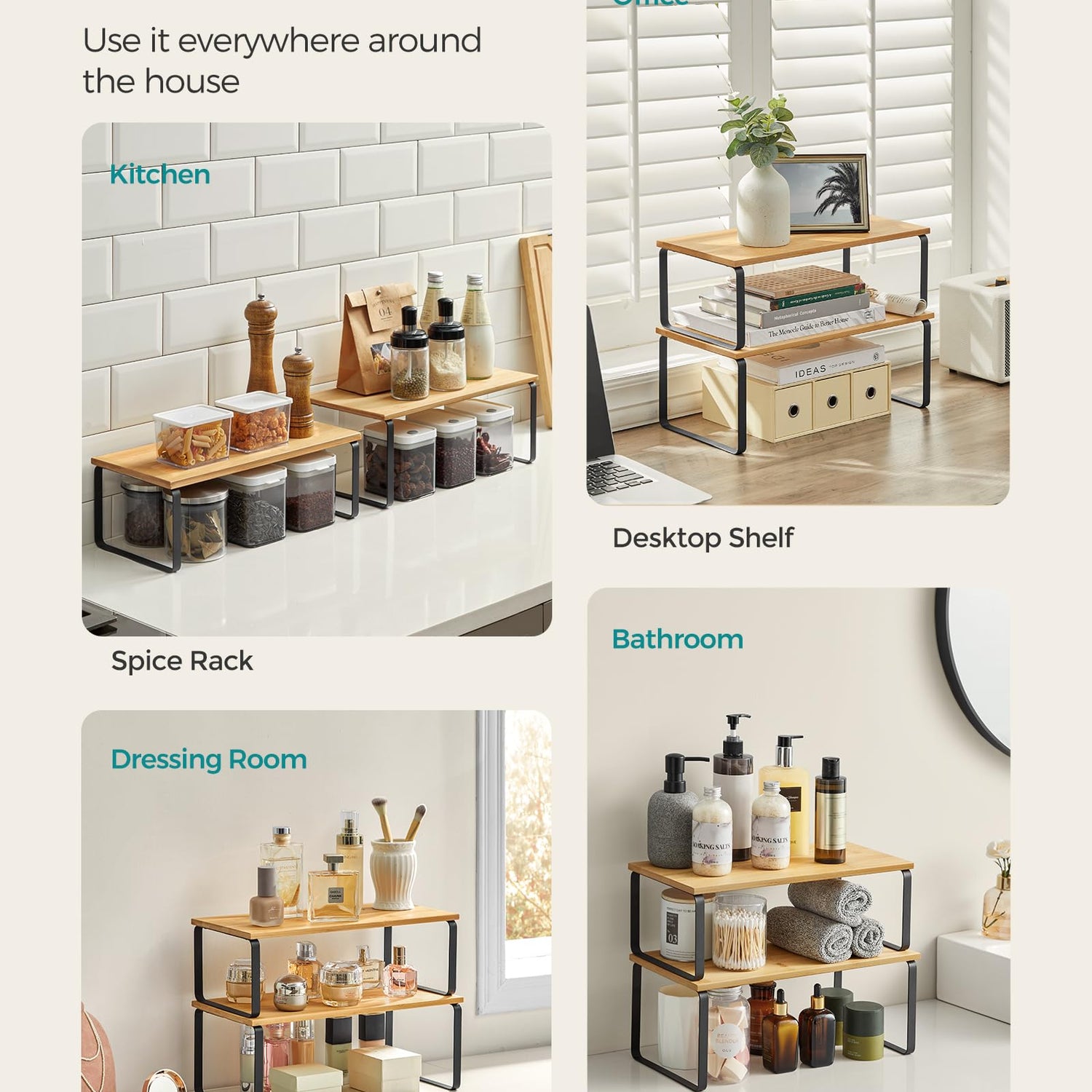 - [Versatile] They can be used in more than just the kitchen! Use them in the dining room as a way to elevate your table centerpieces, on your bedroom desk to organize your items, or even in your bathroom to neatly store your bathroom essentials