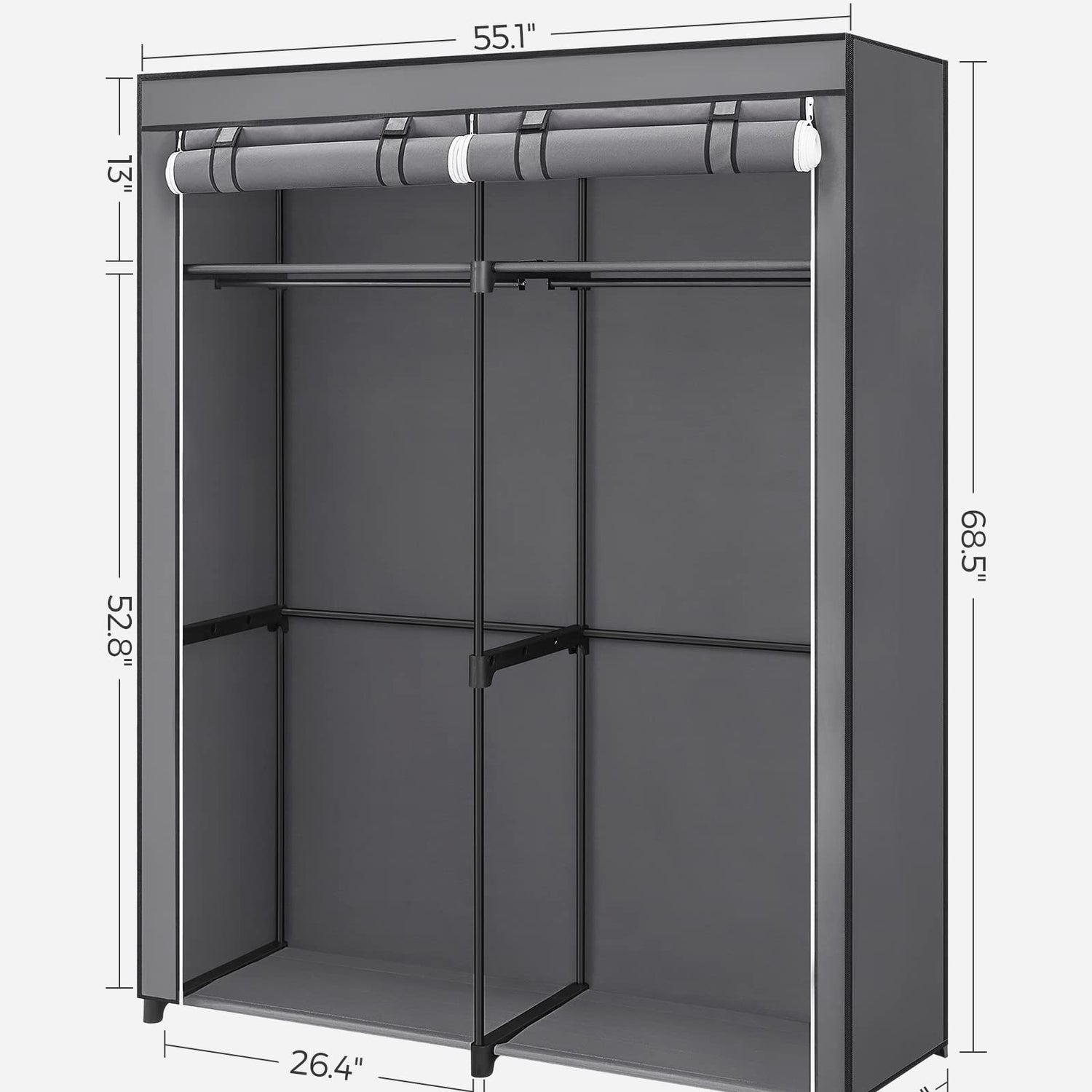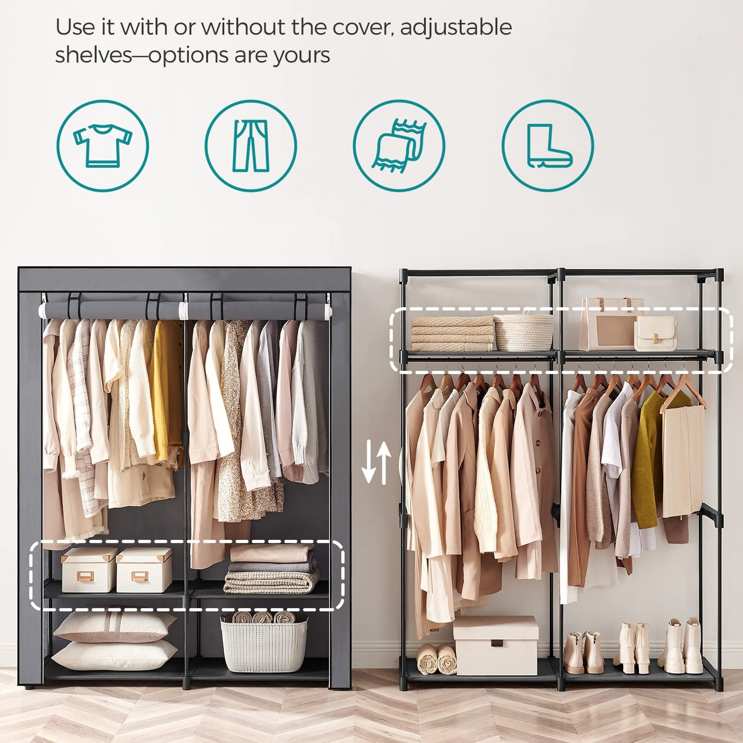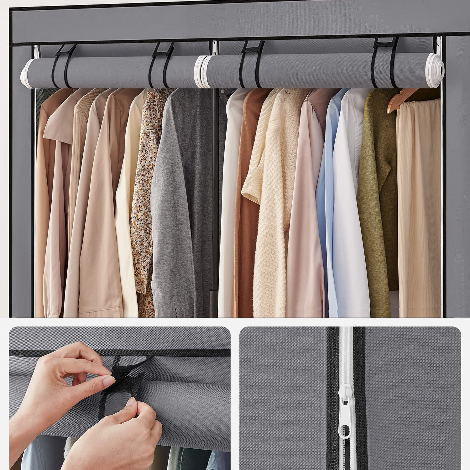 SONGMICS Closet Wardrobe, Portable Closet for Bedroom, Clothes Rail with Non-Woven Fabric Cover, Clothes Storage Organizer, 55.1 x 16.9 x 68.5 Inches, Gray URYG02GY