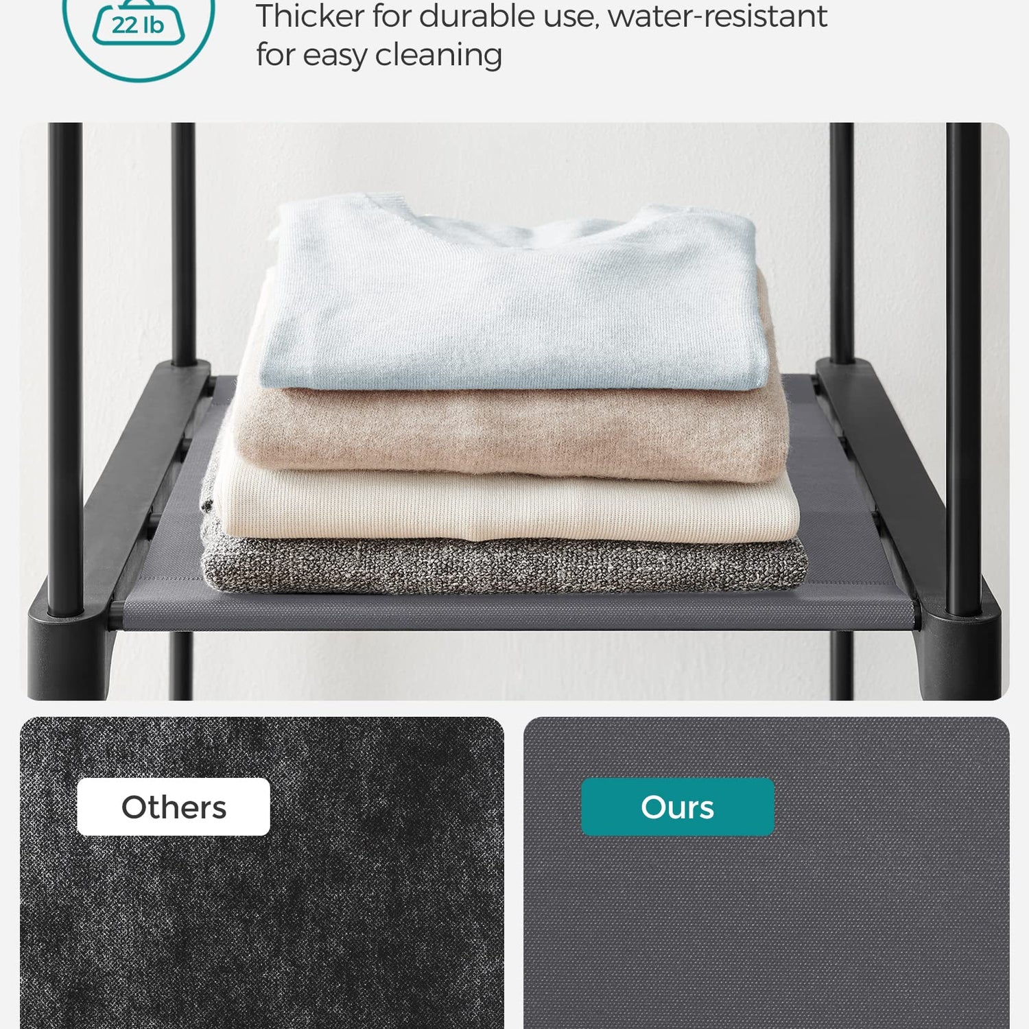 - [It Has the Strength] The 0.4 mm thick hanging rods have a load capacity of 66 lb each and the fabric shelf holds up to 22 lb because it’s supported by four 0.6" dia. metal tubes and strengthened double-sided connectors