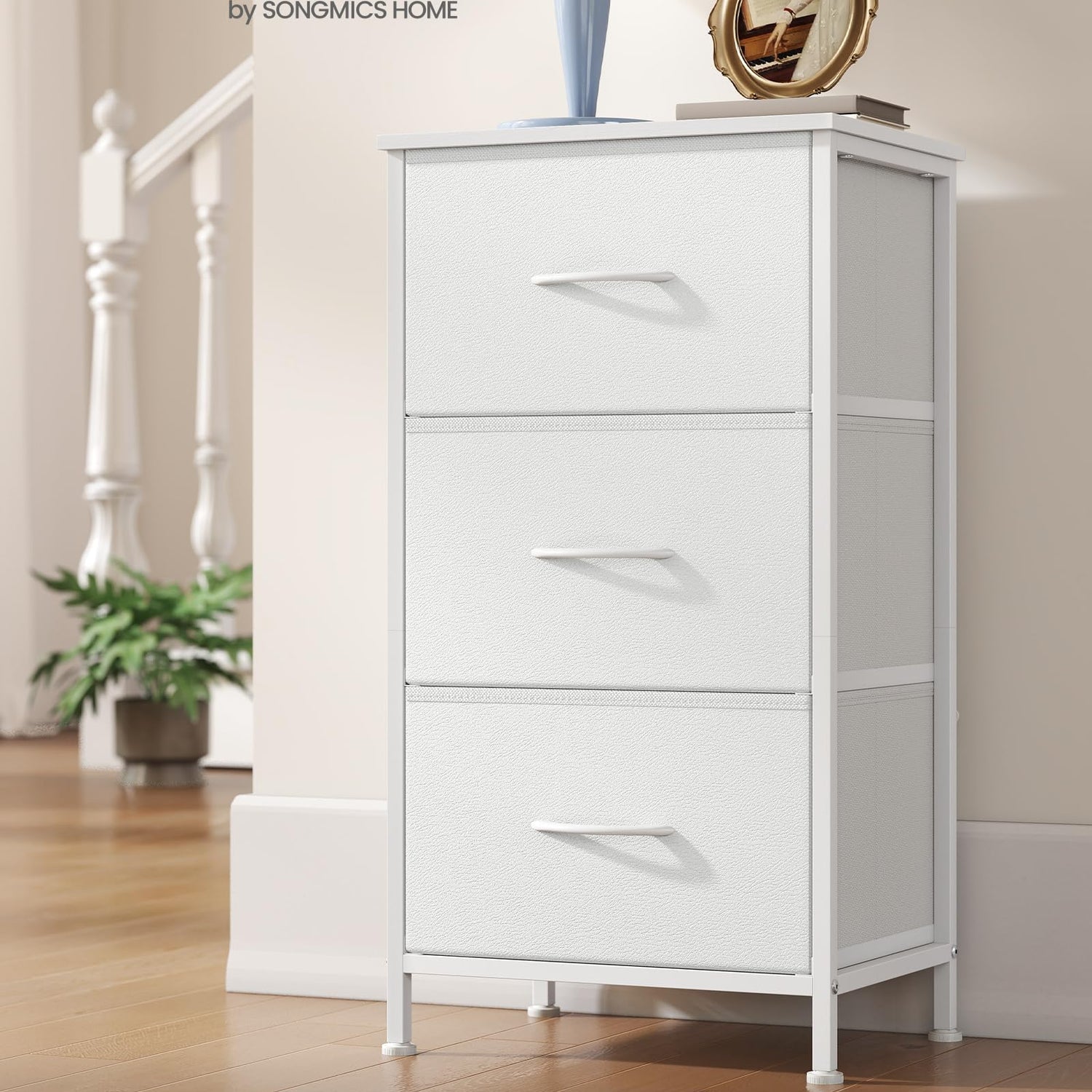 SONGMICS Dresser for Bedroom, Chest of Drawers, Steel, MDF, 3 Non-Woven Fabric Drawers, Storage Organizer Unit, Closet, Entryway, Cloud White and Snow White ULGS313W01S