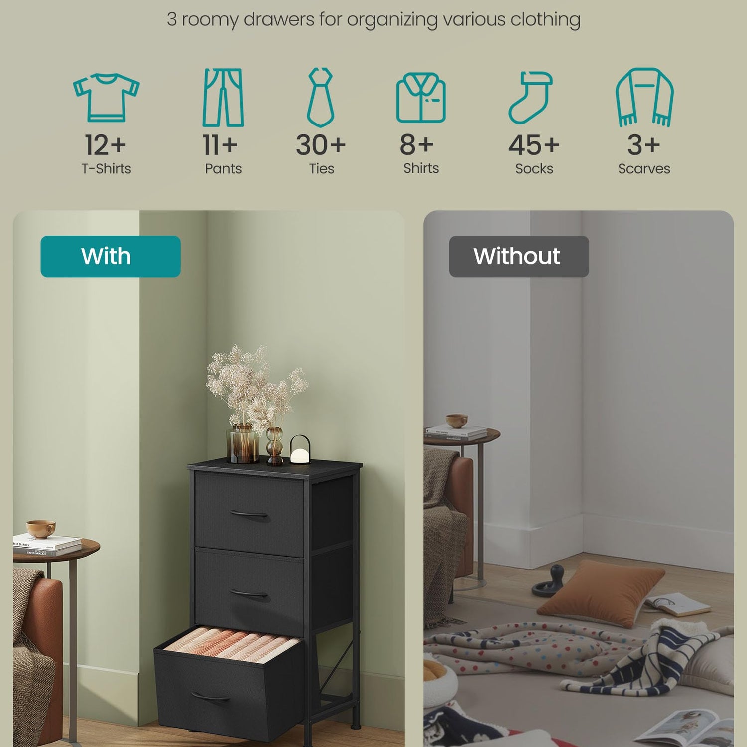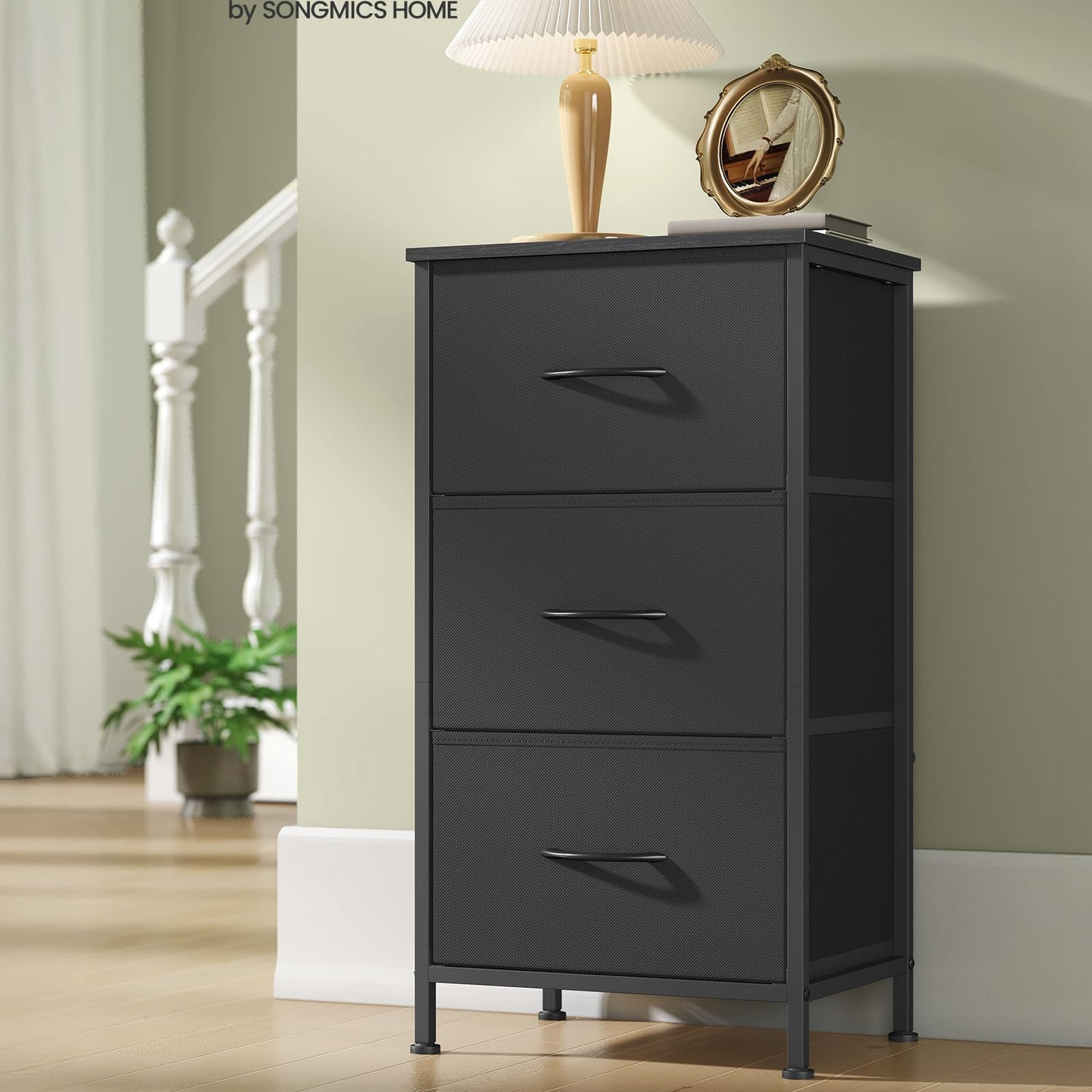 SONGMICS Dresser for Bedroom, Chest of Drawers, Steel, MDF, 3 Non-Woven Fabric Drawers, Storage Organizer Unit, Closet, Entryway, Ink Black and Ebony Black ULGS313B01S