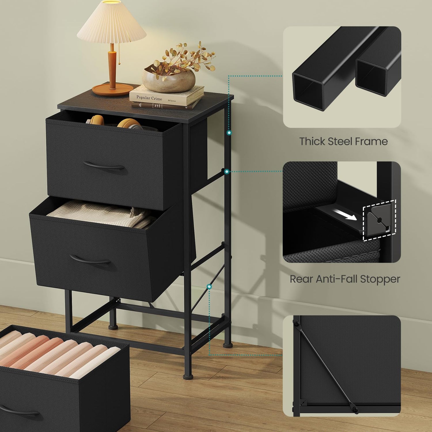 - Solid Construction: Crafted with a steel frame, particleboard top, and non-woven fabric drawers with MDF structures, this drawer tower is durable and sturdy, with the top holding up to 66 lb and each drawer up to 11 lb