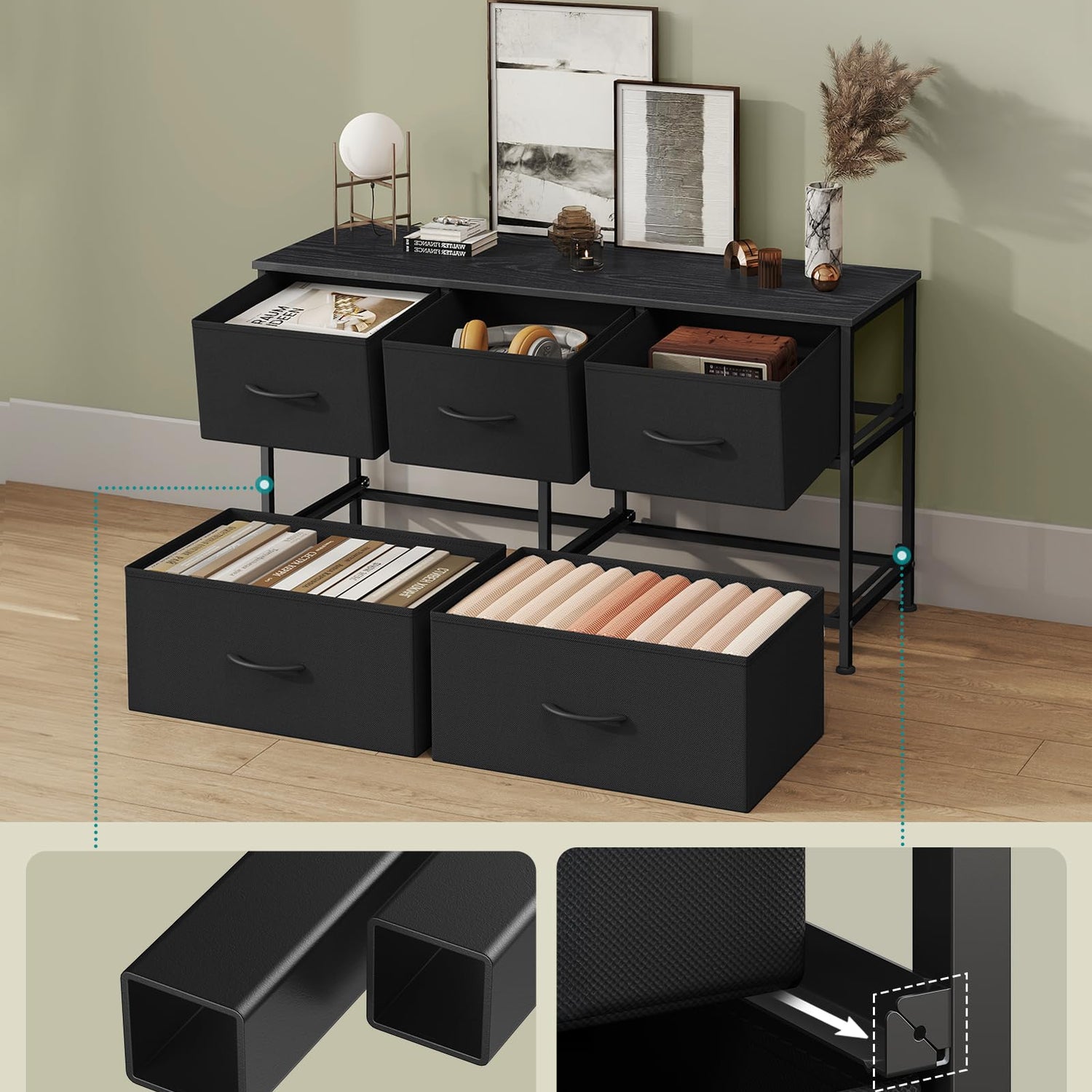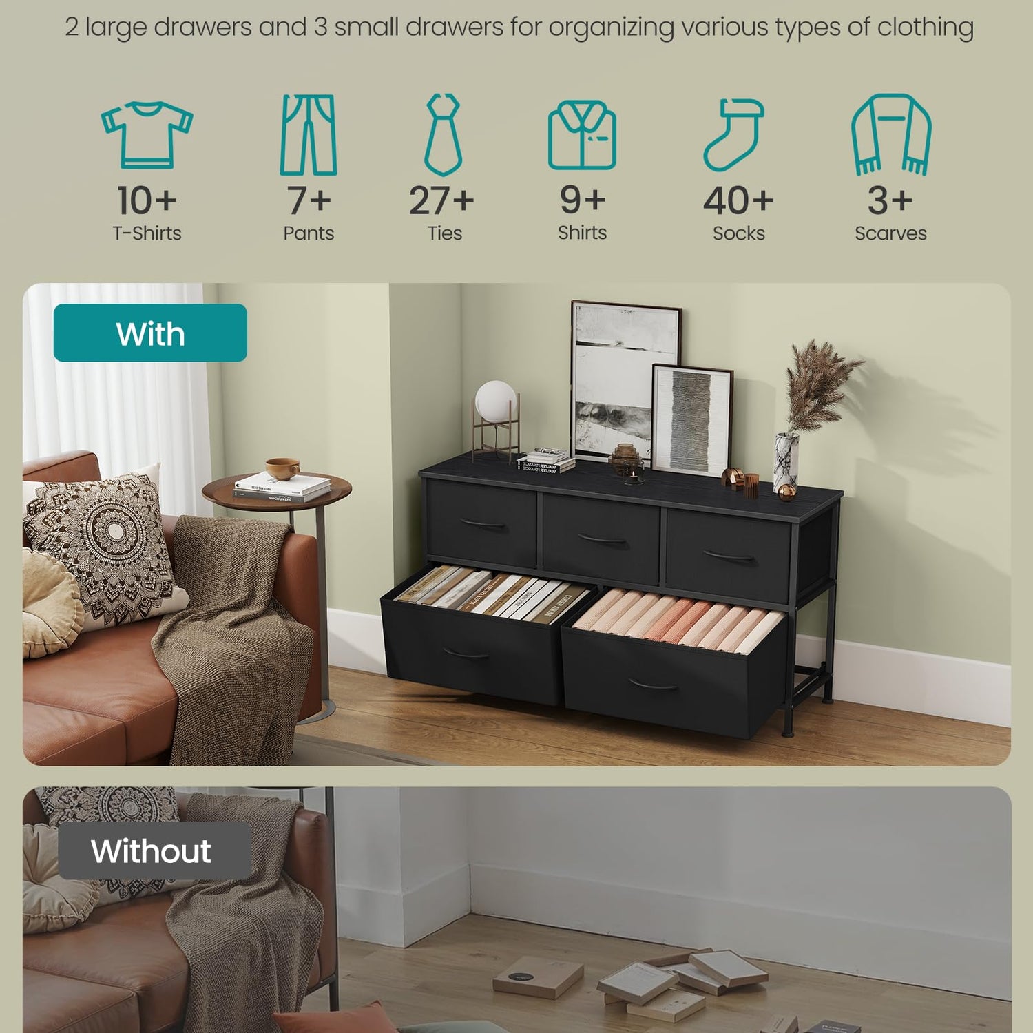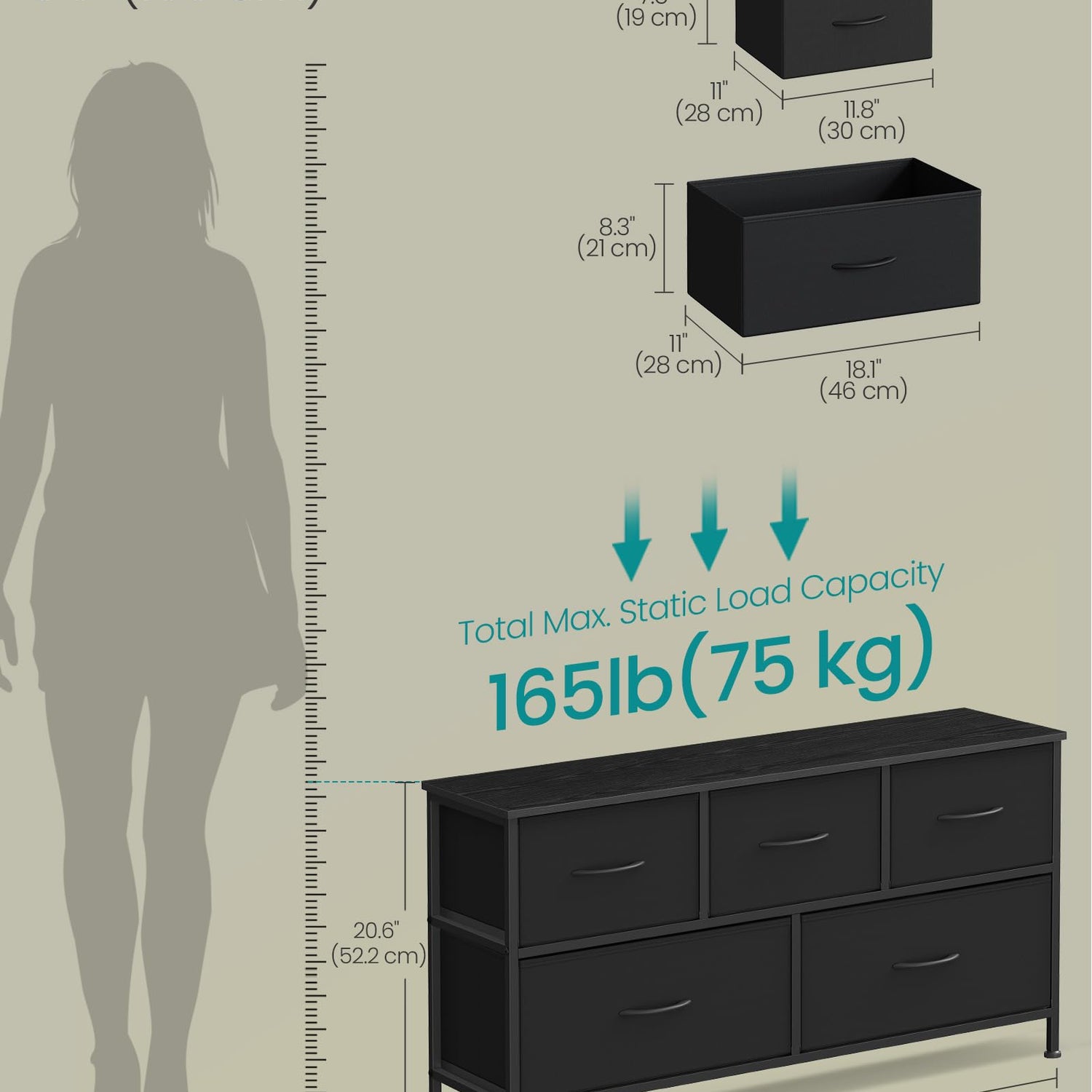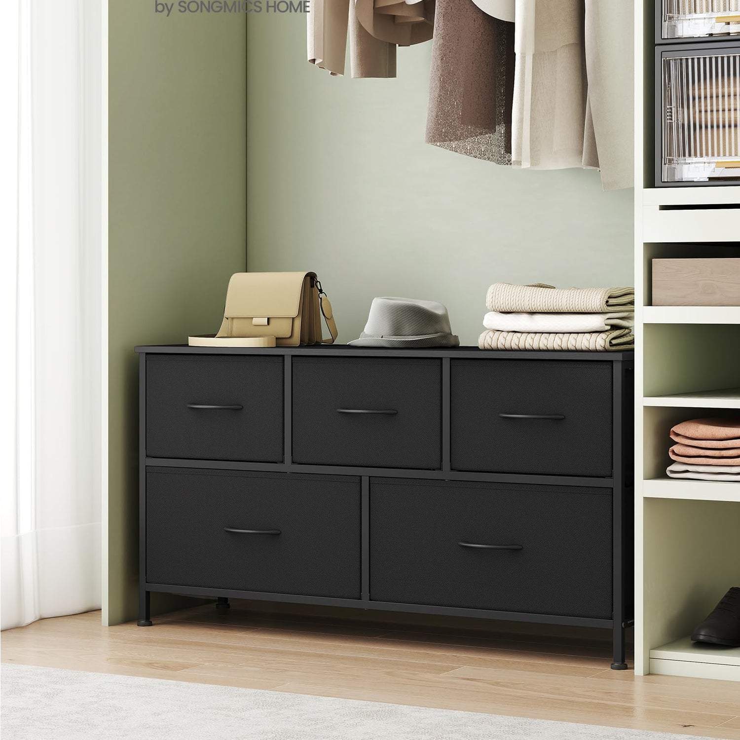 SONGMICS Dresser for Bedroom, Chest of Drawers, Steel, MDF, 5 Non-Woven Fabric Drawers, Storage Organizer Unit, Closet, Entryway, Ink Black and Ebony Black ULGS322B01S