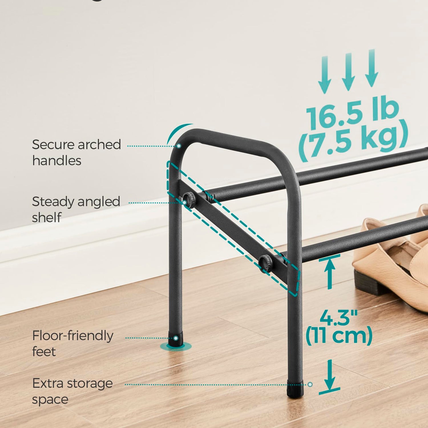 - [Angled Shelf Design] This shoe rack is specially designed with an angled shelf to ensure your shoes stay in place and prevent your high heels from slipping