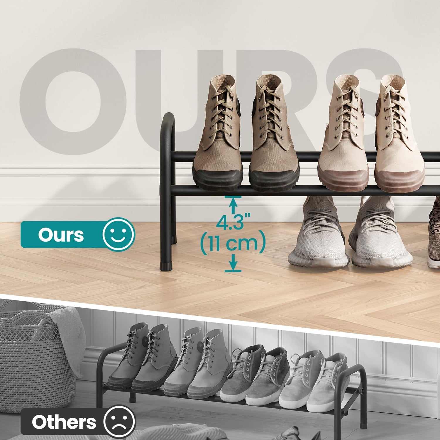- [Maximize Your Shoe Storage] The expandable shoe rack provides ample space to accommodate a wide range of shoe types. Besides, you can store more shoes under the shelf