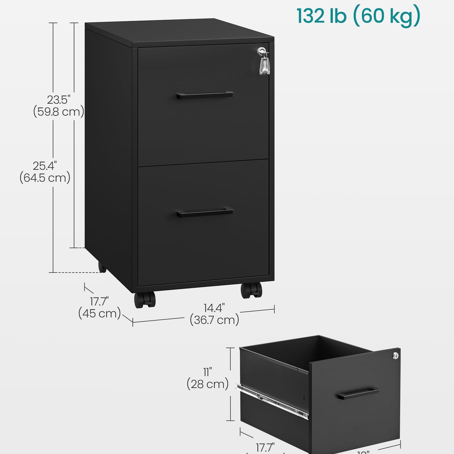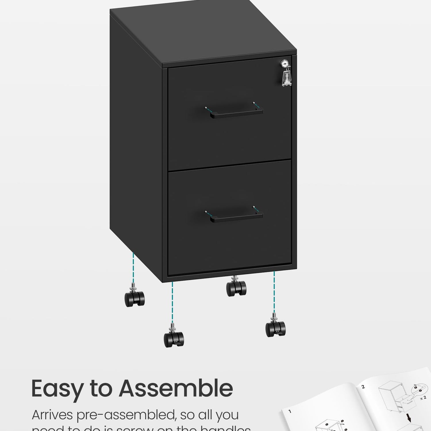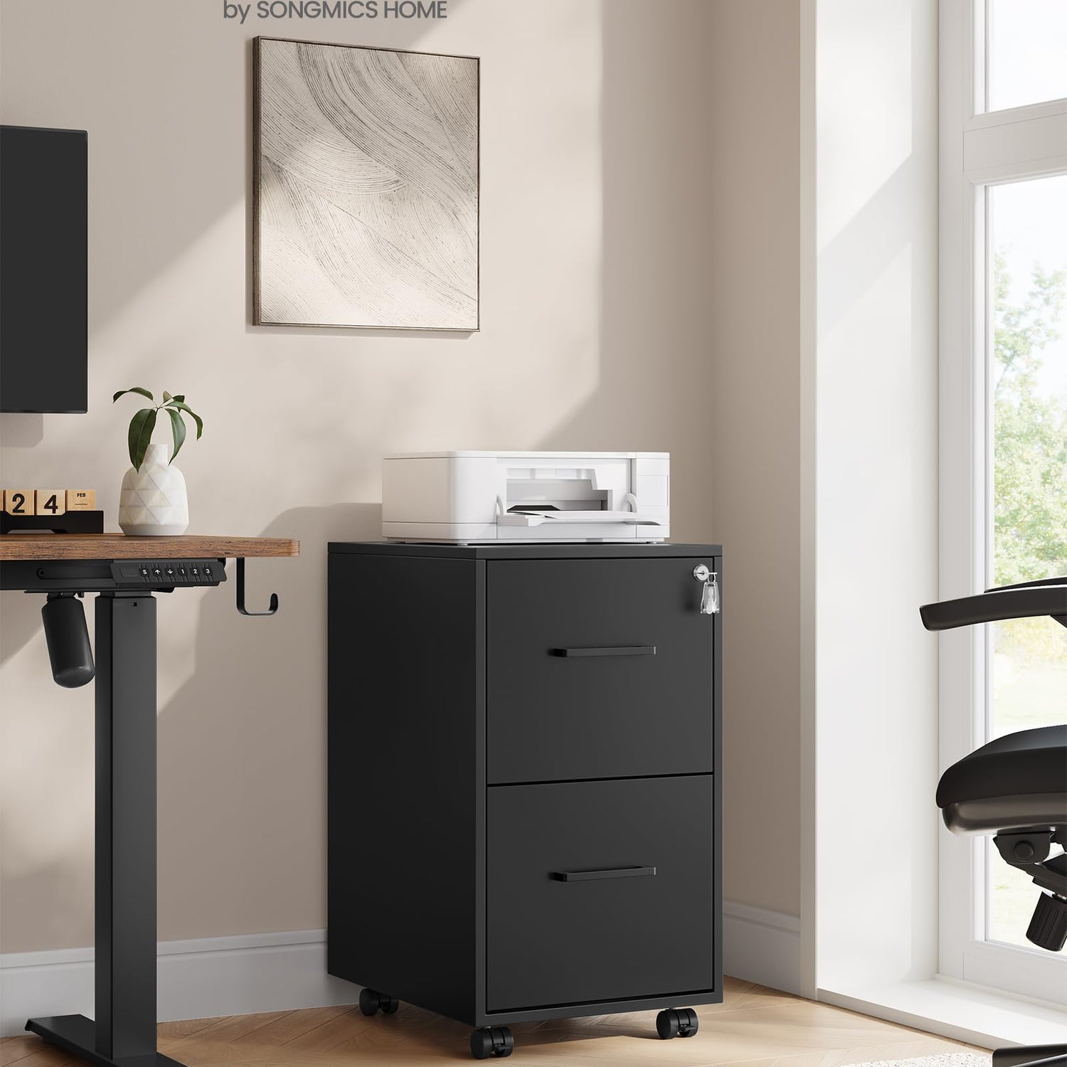 SONGMICS File Cabinet, Pre-Assembled Except Wheels and Handles, Office Filing Cabinet with Lock, for A4, Legal, Letter Sized Documents, 17.7 x 14.4 x 25.4 Inches, Matte Black UOFC112B01