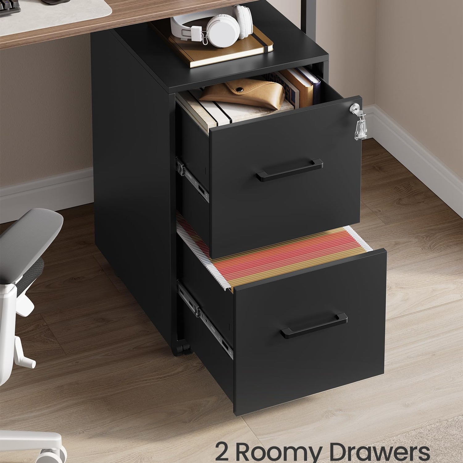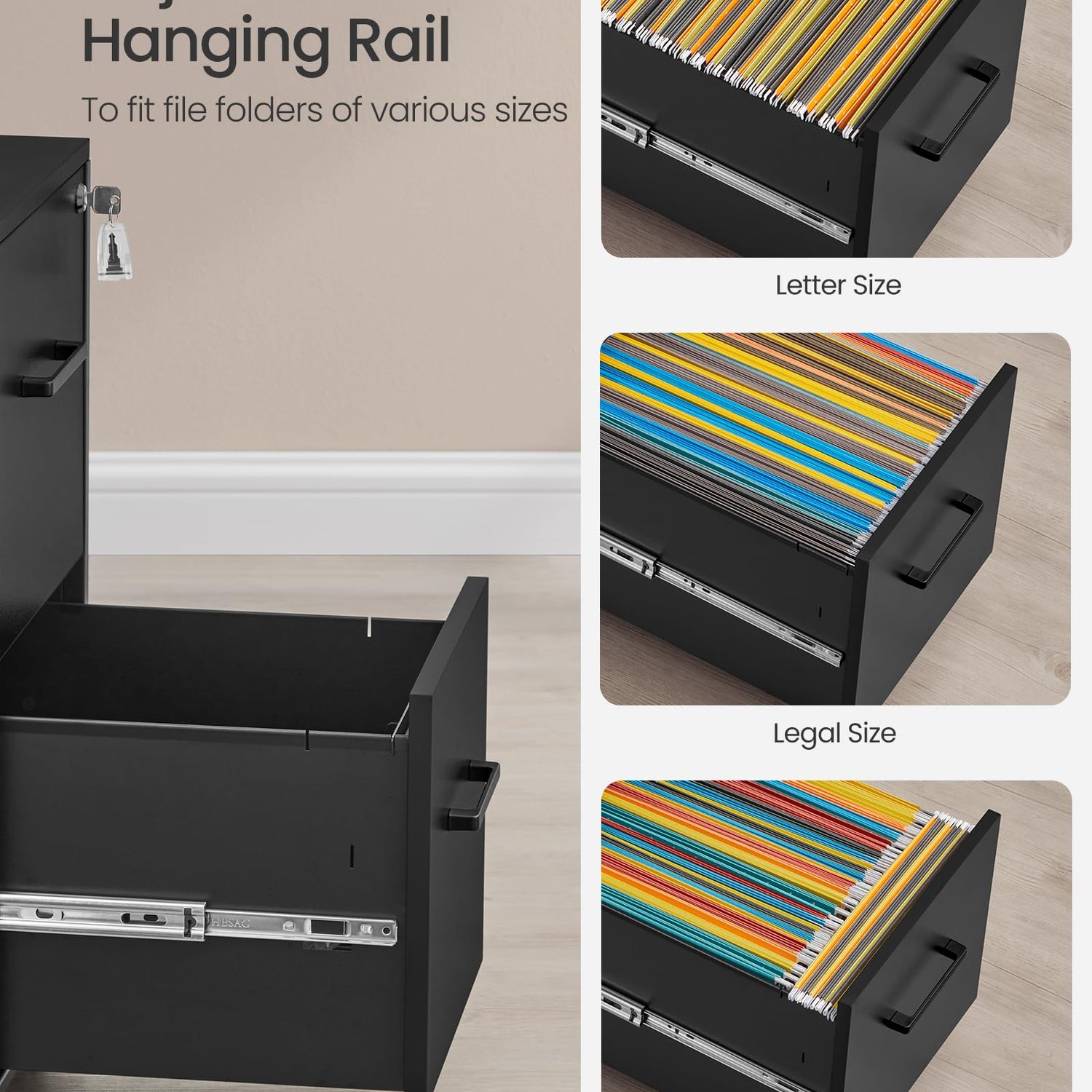 - [Generous and Thoughtful] Pens, sticky notes, A4, letter or legal sized hanging files...keep them all organized and secured in the 2 drawers with 2 hanging rails, and a lock included. Full extension slides make it smooth to open and close